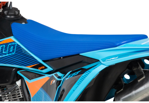 • Высота по седлу — 950 мм, а общая высота до руля — 1150 мм, что делает посадку типичной для кроссовых моделей: высокой и агрессивной, но при этом позволяющей уверенно ставить ноги на землю опытному райдеру.
