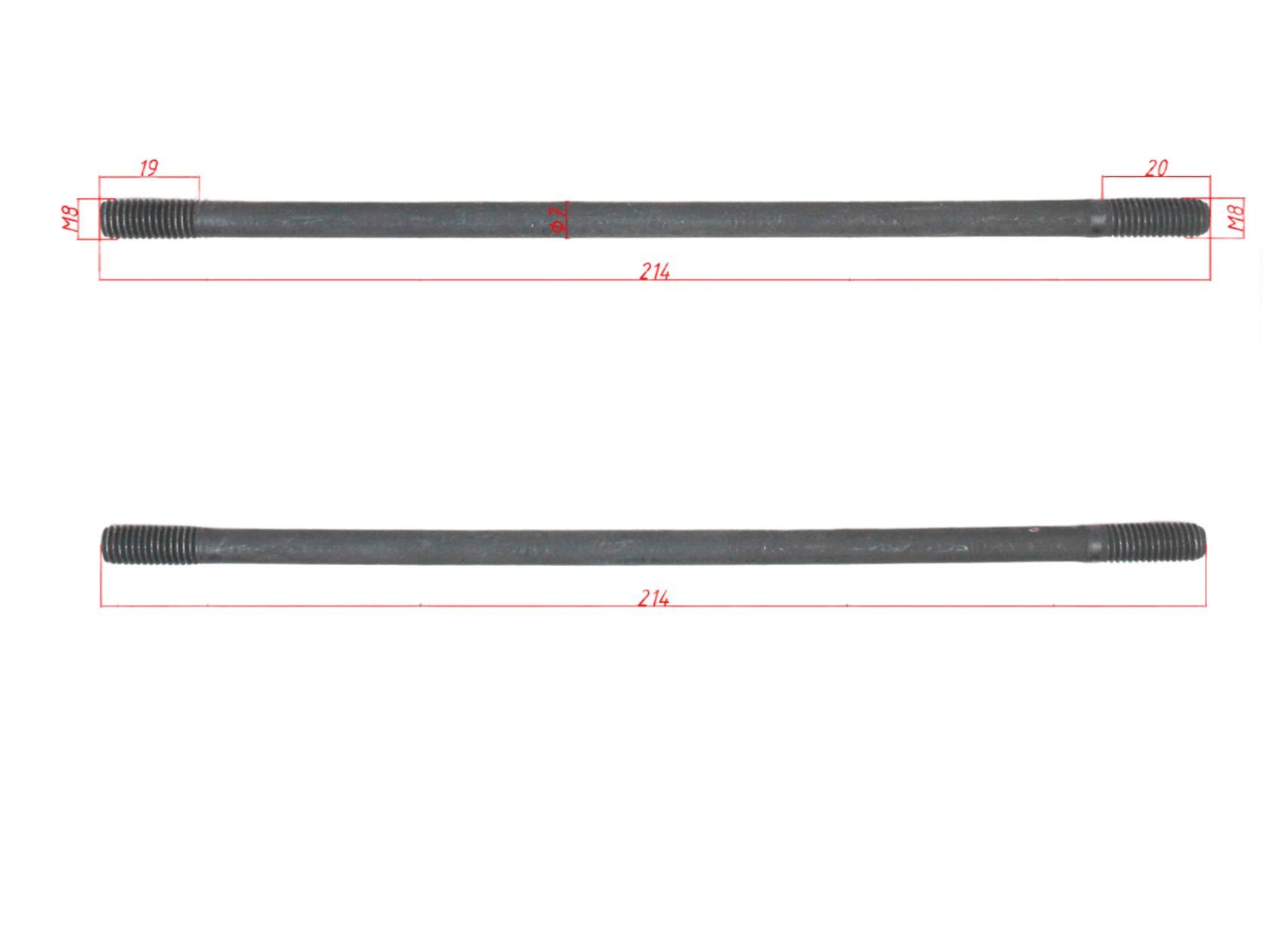 • Шпильки цилиндра (Левые) для двигателя YX150 / YX160 (Длина 214 мм / М8)