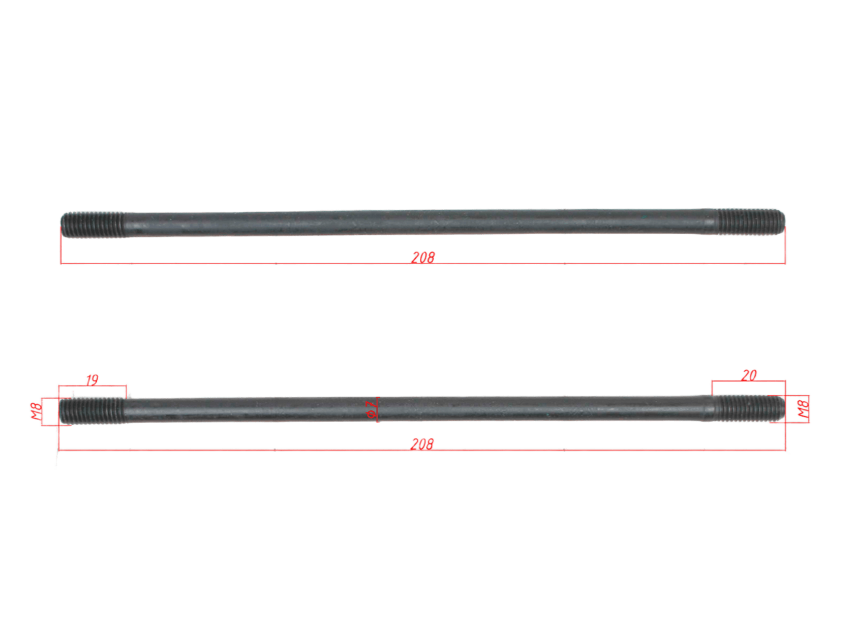 • Шпильки цилиндра (Правые / Короткие) для двигателя YX150 / YX160 (Длина 208 мм / М8)