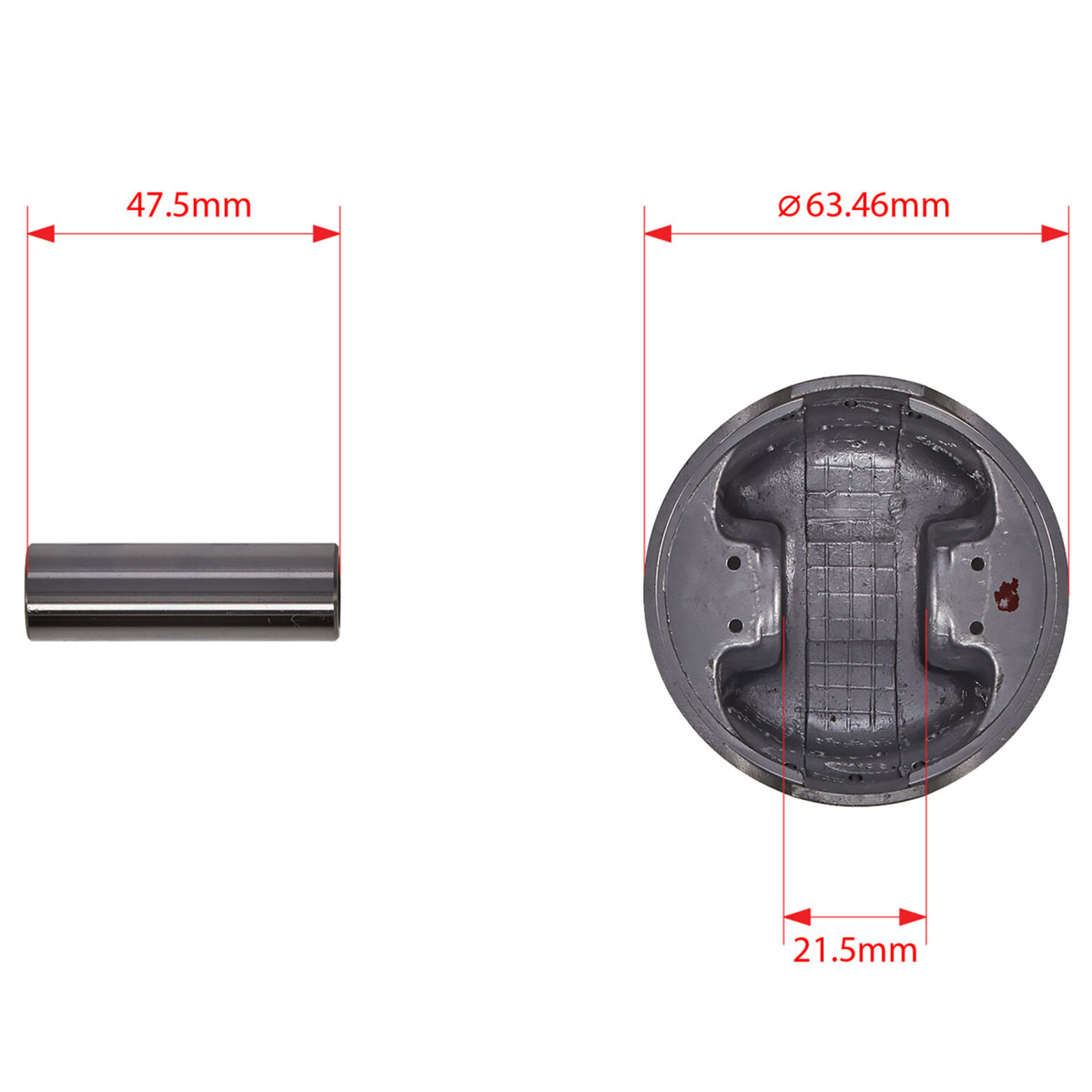 • • Длина поршневого пальца: 47.5 мм