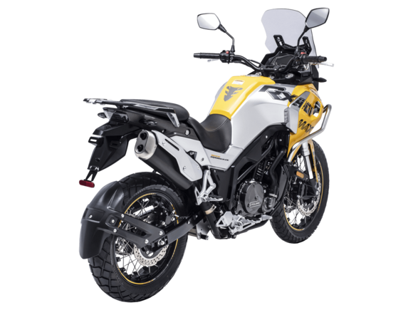 Мотоцикл CYCLONE RX401 (SR400GY-2D) – туристический эндуро, готовый бросить вызов любым дорогам и расстояниям. За рулём этого мотоцикла для вас не будет невозможных маршрутов. Его агрессивный дизайн всецело соответствует традициям жанра данного класса мототехники.Рядный двухцилиндровый четырёхтактный двигатель объёмом 401 см3 выдаёт 43 л.с. на 9500 об/мин. Максимальный крутящий момент достигается на 8000 об/мин и составляет 37 Н·м. Инжекторный впрыск топлива с блоком управления BOSCH увеличивает топливную экономичность, а также позволяет добиться высокой приёмистости и неприхотливости агрегата. Жидкостная система охлаждения не допустит перегрева двигателя даже при самом агрессивном вождении. На мотоцикл 6-ступенчатая механическая коробка передач.Максимальная скорость мотоцикла составляет 139 км/ч.RX401 оснащён спицованными алюминиевыми колёсами диаметром 17 и 19 дюймов. Колёса обуты в бескамерные покрышки от фирмы CST. С неровностями дороги эффективно справляются телескопическая вилка перевёрнутого типа спереди и маятник с моноамортизатором сзади. Ход передней подвески составляет 130 мм, задней – 55 мм. Оба компонента подвески являются регулируемыми. Эффективное и безопасное замедление с любых скоростей обеспечивают гидравлические дисковые тормоза с двухканальной системой ABS спереди и сзади.Клиренс мотоцикла составляет 185 мм. Объём топливного бака – 20 л. Снаряжённая масса – 215 кг.Мотоцикл отличает хорошо продуманная компоновка с высоко расположенным радиатором. На данной модели штатно установлены дуги безопасности, защита картера и двигателя, а также багажник с креплениями для боковых кофров. Кроме того, мотоцикл снабжён центральной подножкой для лёгкого обслуживания цепи, колес и вилки.Бортовой компьютер оборудован цветным дисплеем привлекательного дизайна со специальным защитным козырьком, спасающим от брызг и бликов. Из других приятных мелочей в допоборудовании мотоцикла стоит выделить 12-вольтовую розетку, подсветку пультов и USB-порт.Мотоцикл сочетает в себе отличные технические характеристики, комфорт и надёжность, что позволяет вам ощутить настоящую свободу на любой дороге с любым покрытием.