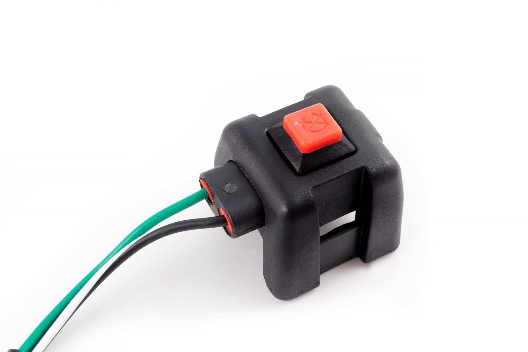 • Универсальная влагозащищенная кнопка экстренного отключения (“стоп-двигатель”) с креплением на руль. Подходит для установки на широкий спектр техники.