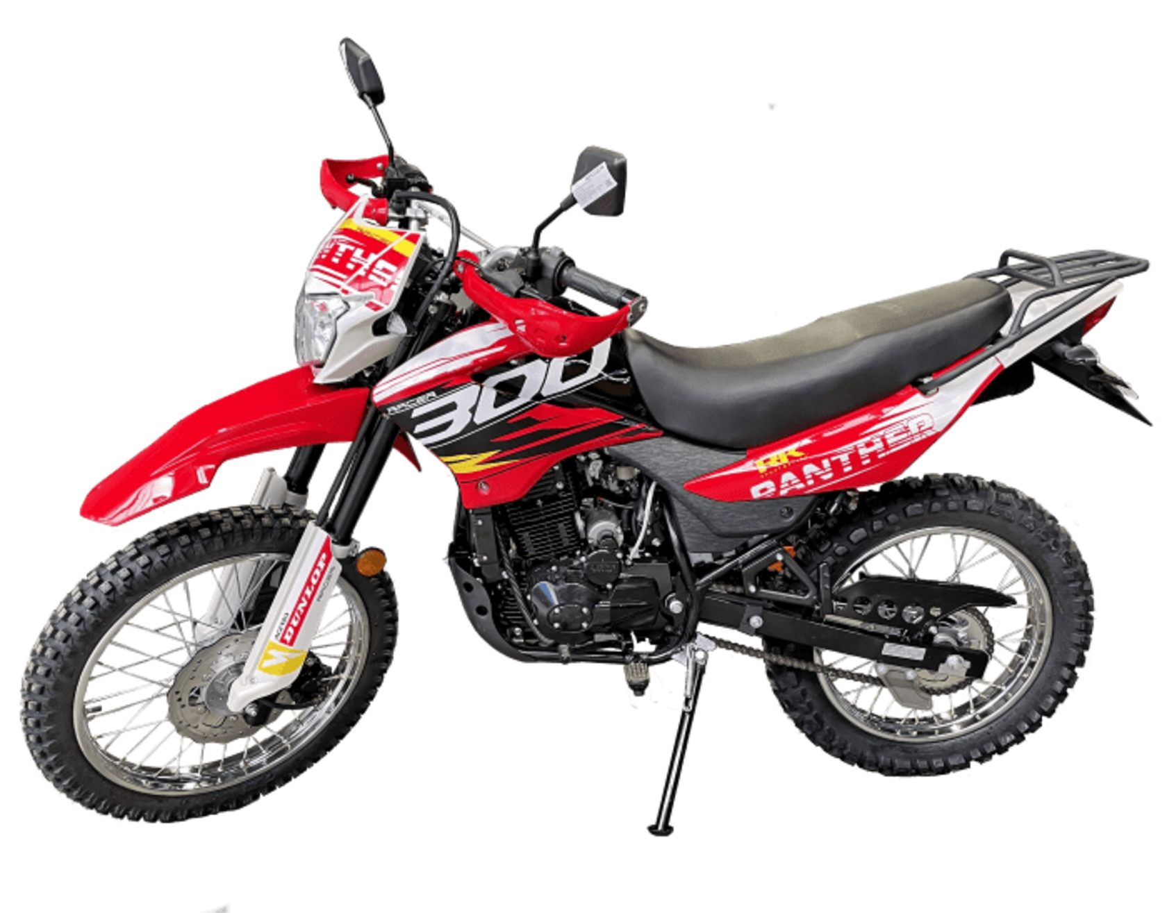 Обновленная в 2023 году версия популярного мотоцикла RACER Panther RC300-GY8X. Этот яркий представитель семейства поселкового эндуро зарекомендовал себя в самых разных ситуациях. На таком аппарате можно смело отправиться и на рыбалку, и в небольшое путешествие, и просто использовать его как основное средство передвижения в сельской местности. RACER комплектуется полноценной сидушкой, удобной как для пилота, так и для пассажира. Мотоцикл для умеренного бездорожья за умеренную цену с этого года выходит в новом дизайне, с новой цветовой гаммой, с новым более эластичным пластиком, с новой фарой бОльшего угла обзора, усовершенствованной выхлопной системой и новыми более грязевыми покрышками.