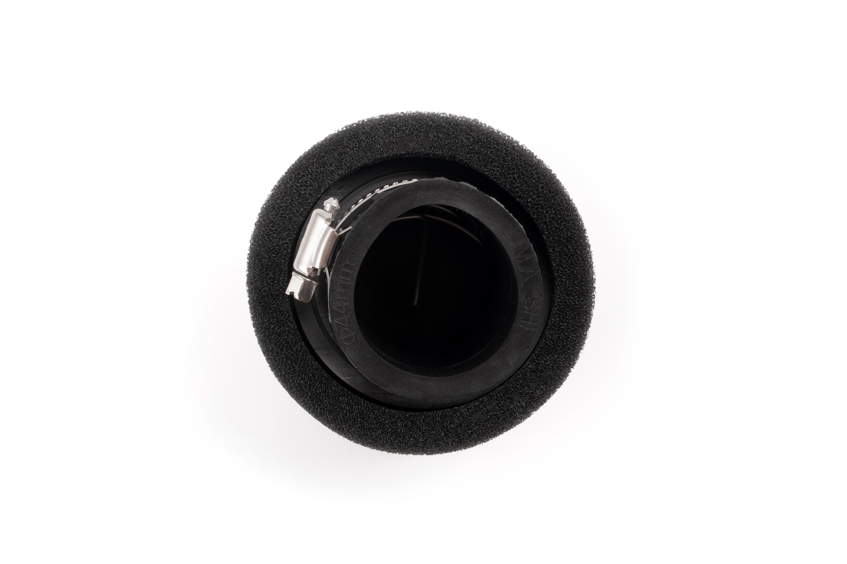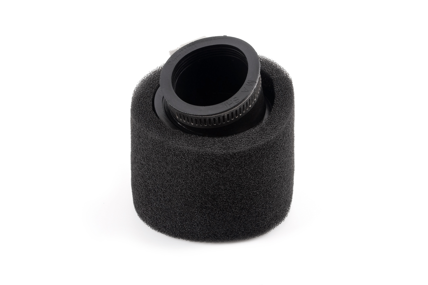 Универсальный воздушный фильтр с угловым (изогнутым) подсоединением для карбюратора. Предназначен для установки на питбайки, мопеды, скутеры и среднеразмерные эндуро мотоциклы с посадочным диаметром 45 мм. Идеален для использования при замене штатного фильтра при тюнинге или ремонте.Особенности и преимущества: