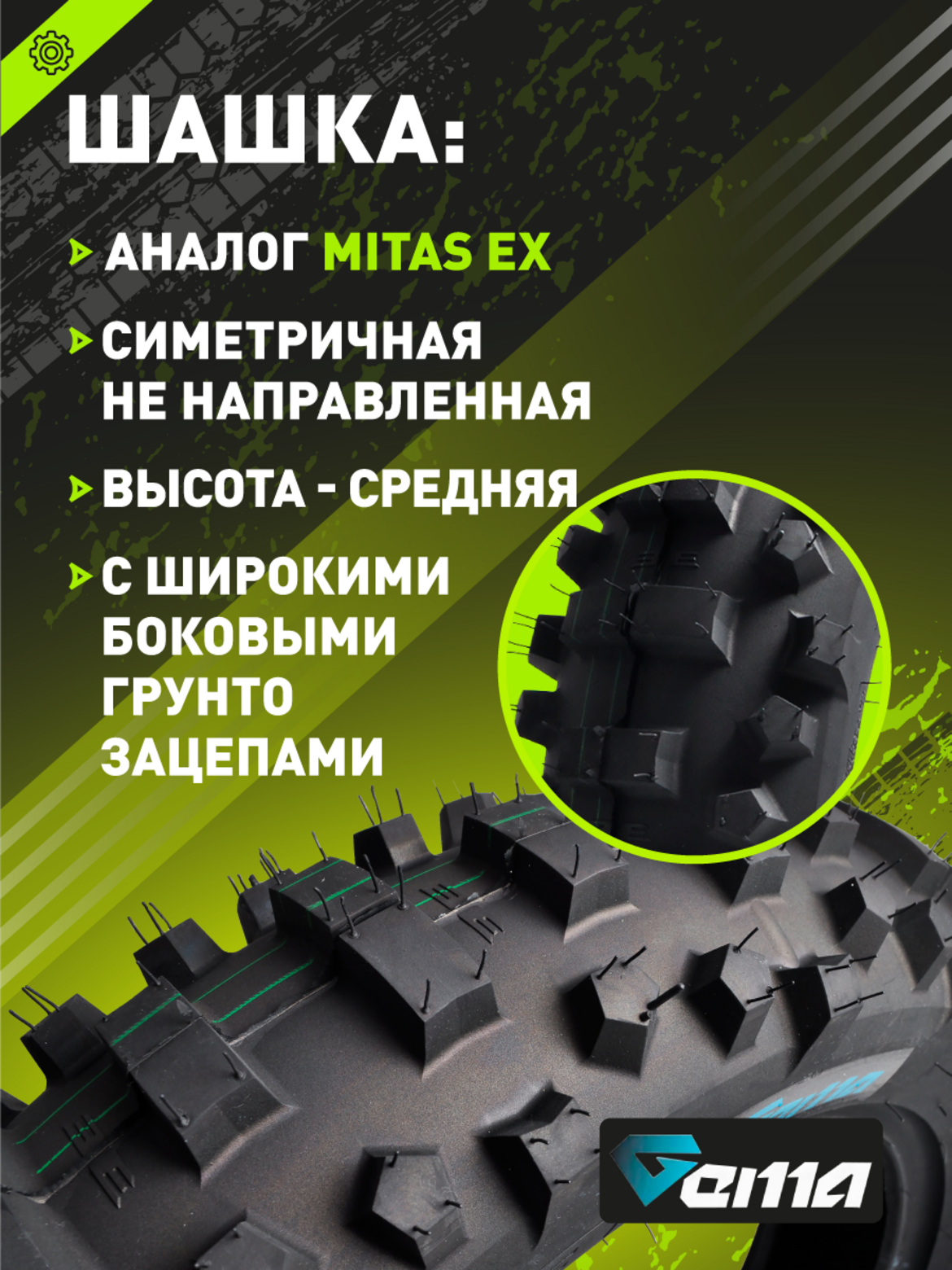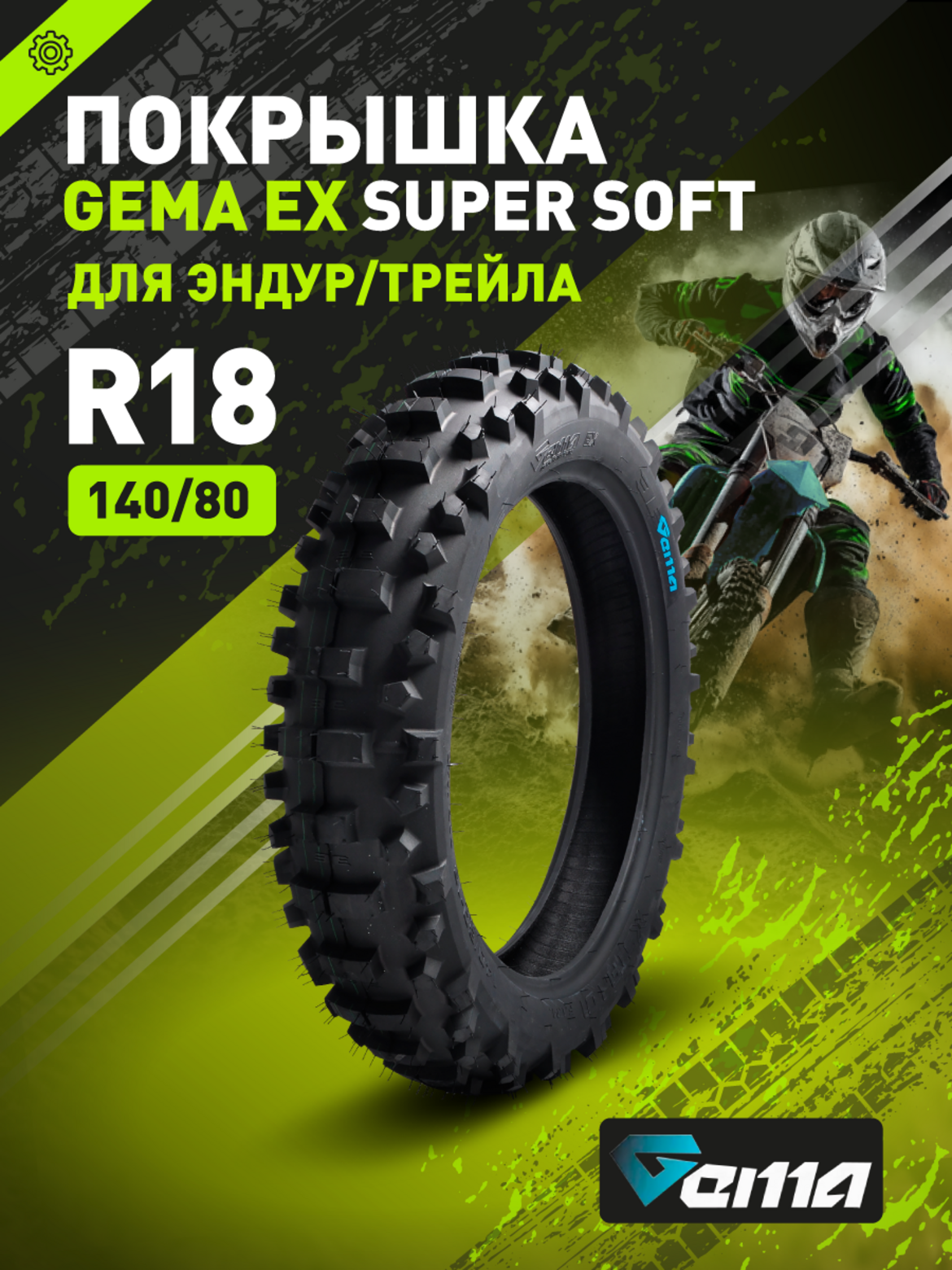 • Если вы ищете максимальное сцепление на сложных трассах, лесных дорогах, грунте — GEMA EX SUPER SOFT 140/80-18 с зелёными полосками станет отличным выбором для вашего заднего колеса. Идеально подходит для условий Центральной полосы России, аналог проверенной Michelin EX, при этом выгоднее по цене.