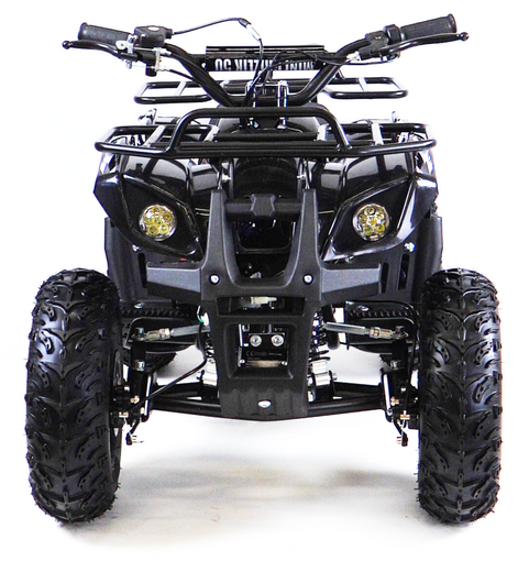 квадроцикл MOTAX GRIZLIK Х16 ES BW(с электростартером и родительским контролем). Отличие от остальных моделей кроется в названии. Этот квадроцикл оборудован 6-дюймовыми колёсами с шинами низкого давления и увеличенного размера, что позволяет получить больший ездовой комфорт и проходимость за счёт увеличенного клиренса.Отлично подойдёт для детей от 3 до 8 лет.Квадроцикл оборудован компактным, двухтактным бензиновым двигателем объёмом 50 куб. см. в паре с фрикционным сцеплением центробежного типа. Это обуславливает простоту и надежность конструкции. Квадроцикл имеет неплохую базовую комплектацию: он оборудован электрическим стартером, пультом дистанционного глушения и запуска двигателя, механическим ограничителем скорости, кнопкой быстрой остановки двигателя, яркими передними светодиодными фарами с режимом ближнего и дальнего света, раздвоенной системой выхлопа, механическим ручным стартером с механизмом легкого запуска. За счёт этого механизма существенно снижено усилие при запуске двигателя, с этой задачей может справиться и ребенок. Простота управления обусловлена фирменной передней подвеской полузависимого типа, которая позволяет сохранить стабильность в движении и лёгкость рулевого управления, что является важным фактором для ребёнка. Передние и задние механические дисковые тормоза способны эффективно остановить лёгкий и прочный квадроцикл. Детский квадроцикл оборудован передним и задним багажниками и прочным передним бампером. Эта модель отлично подойдёт как для получения первого опыта вождения, так и для активной езды по дачным дорожкам и лесопарковым зонам.