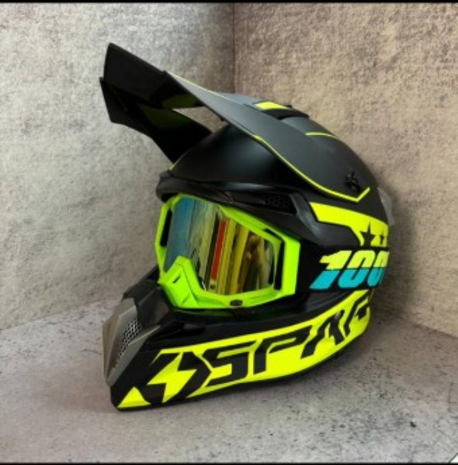 Шлем кроссовый Spark, Черный/Желтый, M (в комплекте с очками 100%)