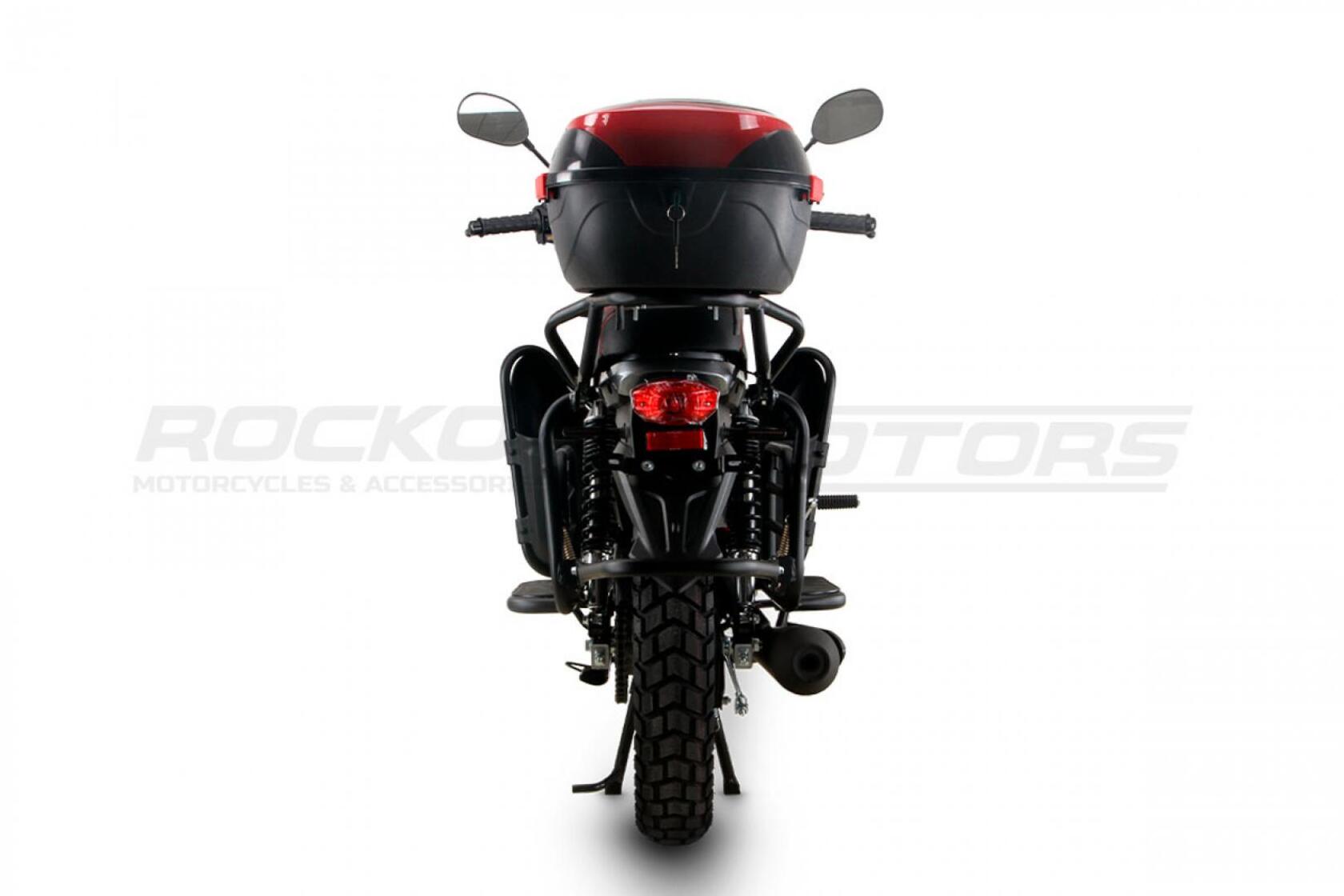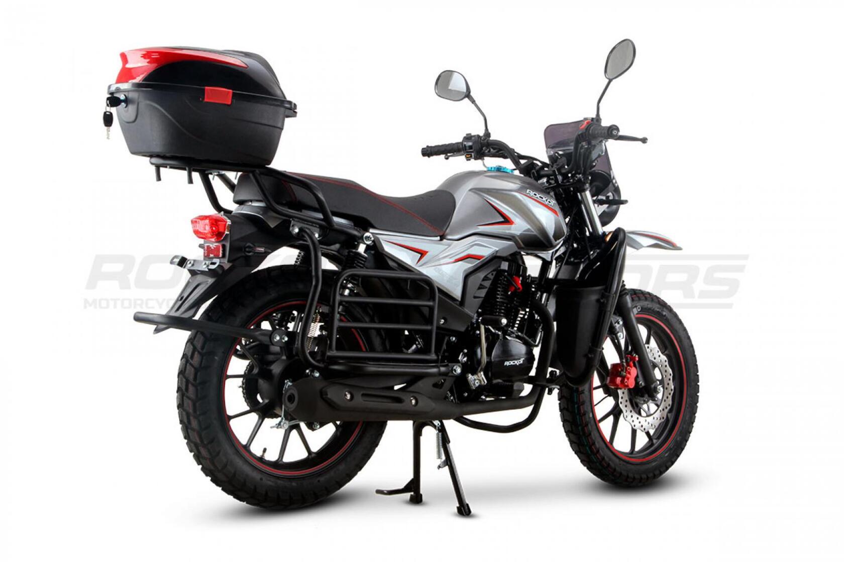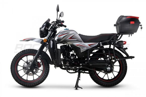 ROCKOT QUEST 150 - новый, дорожный мотоцикл от компании ROCKOT-MOTORS, с большим потенциалом на длительные поездки, независимо от типа дорожного покрытия. Благодаря своим компактным размерам, короткой колесной базе, мотоцикл отлично чувствует себя в городской среде с большим объемом дорожного трафика. Максимальная скорость ROCKOT QUEST 150 - до 92 км/ч на стандартных приводных звездах. Масса мотоцикла -126 килограмм, но при небольшой высоте по седлу в 820 мм и низкому центру тяжести, он ощущается достаточно легким.Мотоцикл имеет ЭПТС, оснащен цветной электронной панелью приборов, зеркалами, всей необходимой светотехникой, что позволяет законно передвигаться по дорогам общего пользования. ДизайнМотоцикл построен в классическом исполнении, но имеет множество современных, технологичных решений.Все световые приборы - светодиодные и очень яркие. Передняя фара имеет круглую классическую форму, но стоит ее включить, как мотоцикл обретает совершенно другой вид.Цветовая гамма модели имеет три варианта окраски: бело-красный, черный и серый.Конечно же, бросается в глаза оснащение мотоцикла туристической багажной системой. На заднем багажнике установлен жесткий центральный кофр. Откидные боковые багажники, позволяют перевозить объемный груз, а также устанавливать боковые багажные сумки. Глядя на мотоцикл, складывается впечатление, что все его пространство использовано максимально практично. Даже в дугах безопасности встроены дополнительные багажные карманы.Топливная системаВ основе топливной системы ROCKOT QUEST 150 - большой топливный бак объемом 12 литров. В зависимости от условий эксплуатации и стиля езды, расход топлива варьируется в районе 3-3,5 литров на 100 километров. Это позволяет преодолевать большие расстояния на одном баке бензина. Используемый тип топлива - бензин АИ-92. Образует топливную смесь - карбюратор PZ27 с ускорительным насосом. Ускорительный насос исключает момент “провала” при резком открытии дроссельной заслонки.Тормозная системаПо канонам классического мотоциклостроения, ROCKOT QUEST 150 имеет комбинированную тормозную систему. Спереди установлен дисковый гидравлический тормоз, с двухпоршневым суппортом, яркого красного цвета. Задний тормоз - механический, барабанный.Кому подойдет ROCKOT QUEST 150Мотоцикл будет очень полезен новичкам. Его небольшие габаритные размеры, низкий центр тяжести, малая высота по седлу - позволяют быстро освоить технику управления мотоциклом как в условиях города, так и бездорожья. С практичной точки зрения, мотоцикл понравится любителям выезжать на отдых за город. Отличная туристическая подготовка, позволит перевозить все, что Вам может потребоваться во время отдыха.Благодаря заложенной надежности в конструкцию двигателя и мотоцикла - ROCKOT QUEST 150 оценит старшее поколение, для кого требуется простая и надежная техника..