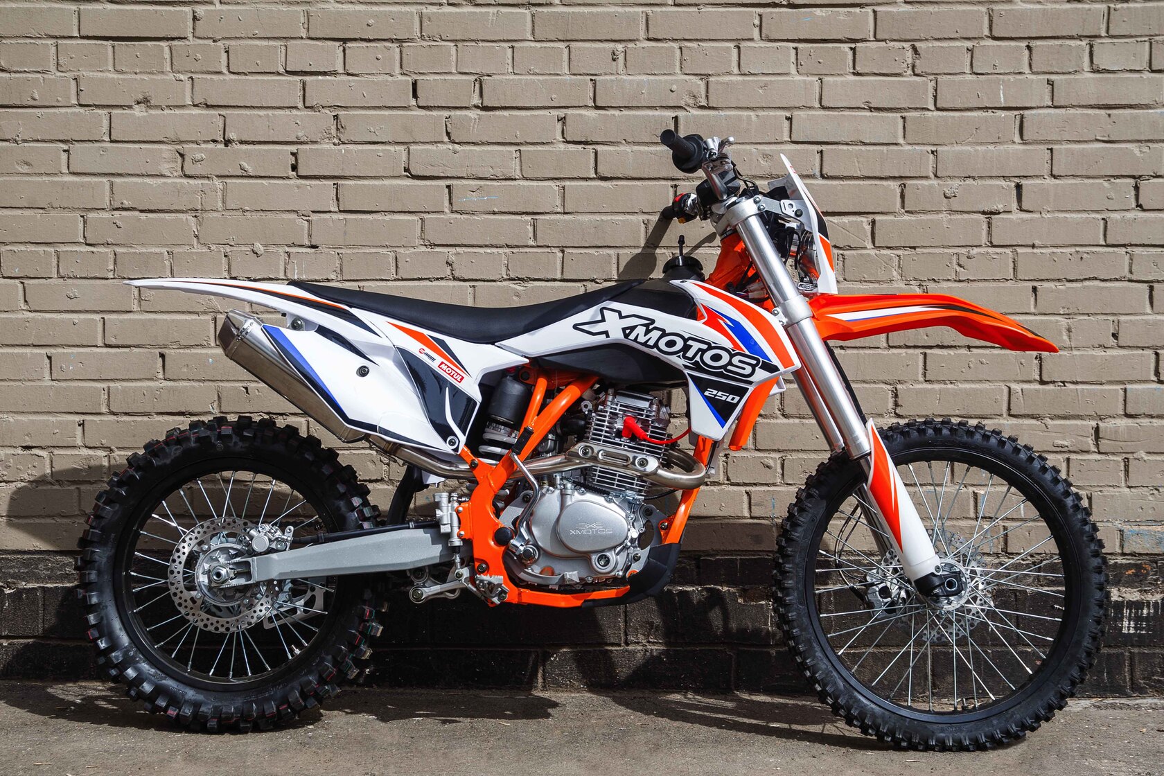 Новинка на Российском рынке - мотоцикл XMOTOS RACER 250 см.куб. 21/18 Эта модель кроссового мотоцикла скомплектована в лучших традициях полноразмерных китайских мотоциклов. В нем применены все компоненты, которые отлично зарекомендовали себя на нашем рынке и прошли испытание временем на надежность. В раме XMOTOS Racer Pro установлен 4-тактный мотор Zongshen 172 FMM с воздушным охлаждением, который можно запускать как при помощи кнопки электростартера, так и привычным рычагом кик-стартера. Показатели максимальной мощности силовой установки мотоцикла составляют около 21 лошадиных сил. При этом ключевые комплектующие и производительность компонентов остаются на достаточно высоком уровне: гибкий, устойчивый к ударам пластик, алюминиевые(7116) ободья колес, фара головного света и нержавеющий выхлопной тракт и банка глушителя приятно дополняют четкую работу двигателя и трансмиссии. Спортивный снаряд начального уровня позволит получить полноценные навыки управления техникой на треке и максимум удовольствия от мотопрогулок в хорошей компании.У нас Вы можете купить этот мотоцикл с бесплатной доставкой по РФ и гарантией до года. Также его можно приобрести в рассрочку или в кредит.