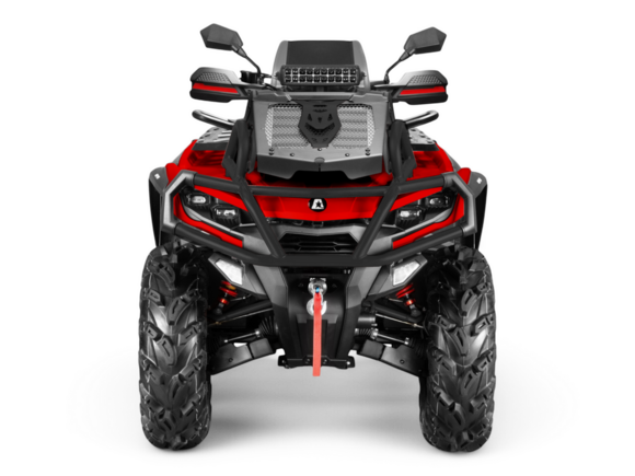 Комплектация Комбинация приборов Электронный ключ зажигания, LCD приборная панель 6,86 дюйма с индикацией основных параметров: вкл/выкл полного привода, индикацией уровня топлива, сигналов поворота и аварийной остановки, подсветки, переключение режимов усилителя руля, информация о техническом обслуживании, лампы головного света Лебедка Лебедка с синтетическим тросом и тросоукладчиком, тяговое усилие 1500 кг Элементы защиты Ветрозащита рук на руле, расширители колесных арок, усиленный передний и задний бампер, замок блокировки рулевого вала, доп. защита днища Дополнительное оборудование Электроусилитель руля, светодиодная оптика, дополнительный свет, фаркоп, вынос радиатора и шноркелей, звуковой сигнал, сигналы поворота, зеркала заднего вида, бардачок объемом 2 литра под сиденьем, алюминиевые подножки водителя, эргономичная задняя багажная площадка, розетка 12 Вольт и USB.