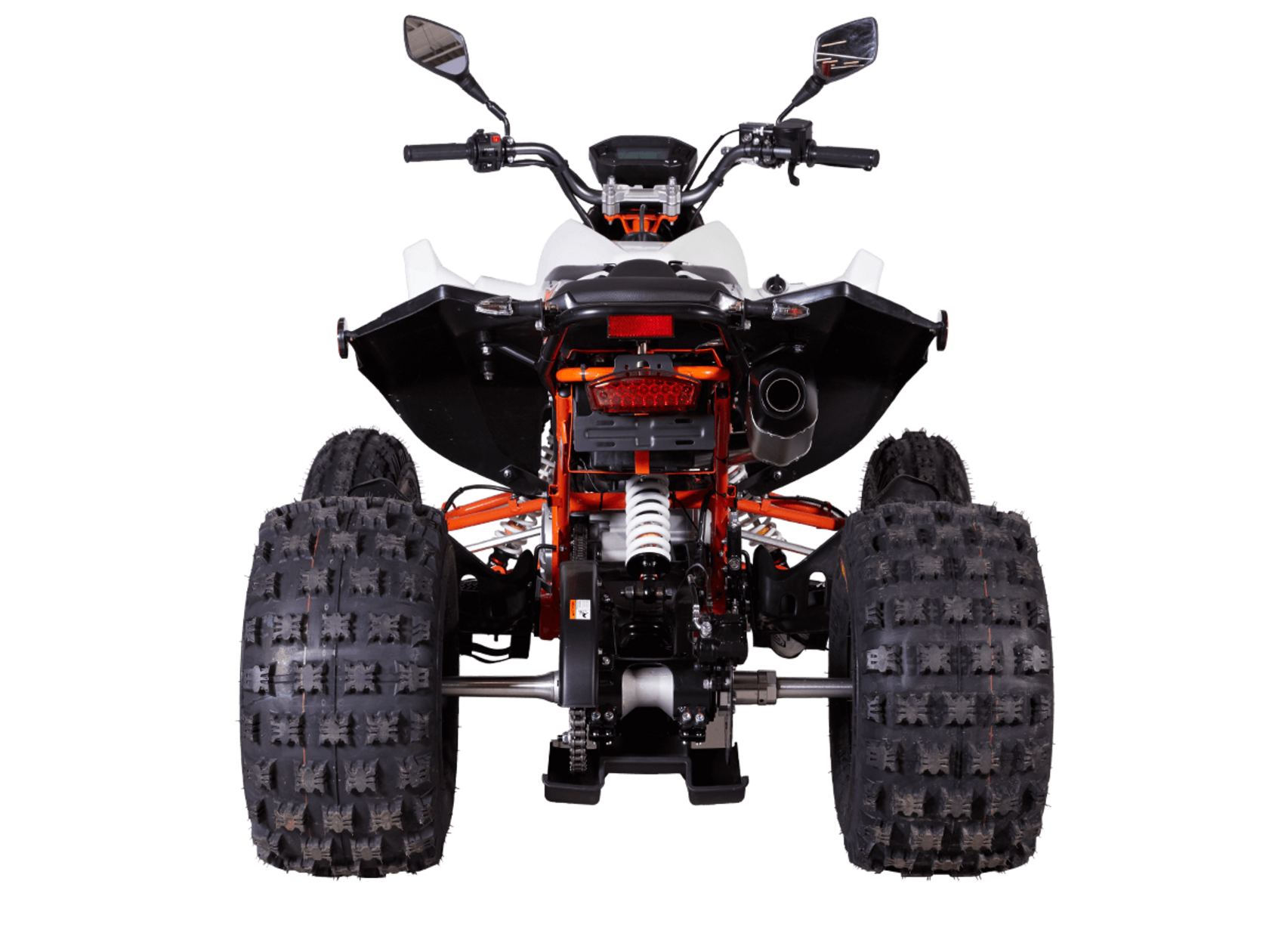 Квадрицикл KAYO A300 – топовый представитель линейки ATV для внедорожного экстрима. Обладает высокими характеристиками, позволяющими справляться с самыми сложными маршрутами. Оснащён ПТС для поездок по дорогам общего пользования.Квадрицикл оснащён одноцилиндровым 4-тактным двигателем LONCIN LX178MN с 4 клапанами и жидкостным охлаждением. Имеет объём 292 см³ и способен развивать мощность до 29 л.с. За подачу топлива отвечает инжектор. Обеспечивает бесперебойную работу в самых жёстких условиях, лёгок в обслуживании и неприхотлив к качеству топлива. Механическая коробка передач с 5 ступенями и реверсом имеет схему R-N-1-2-3-4-5. Объём топливного бака 5,5 литра.На KAYO A300 задействована развитая многорычажная подвеска. Удлинённые рычаги позволили изменить угол наклона амортизаторов и увеличить ширину колеи. Это повысило устойчивость и управляемость квадрицикла. Для адаптации под конкретные задачи подвеску можно настраивать. Длина переднего амортизатора 375 мм, длина заднего амортизатора 380 мм.Рама выполнена из хроммолибденового сплава. Колёса имеют диаметр 10 и 9 дюймов. Обуты во внедорожные покрышки с агрессивным протектором CST Ambush. За торможение отвечает дисковая гидравлическая система. Передние тормозные роторы установлены внутри колёсных дисков, что повысило защиту и надёжность системы в условиях эксплуатации на бездорожье.Квадрицикл оснащён полным комплектом светотехники для поездок в тёмное время суток и по дорогам общего пользования.Габариты квадрицикла 1660х1155х1030 мм, вес 170 кг.