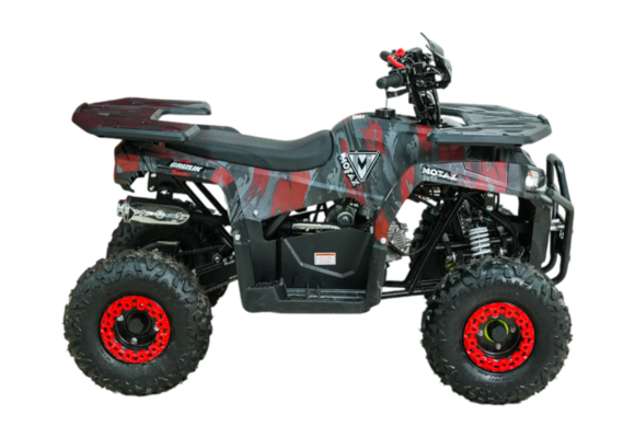 Квадроцикл бензиновый MOTAX GRIZLIK BASIC 125. Оборудован бензиновым четырехтактным двигателем, мощностью 7 л.с. Развивает скорость до 55 км/ч, грузоподъемность до 90 кг.