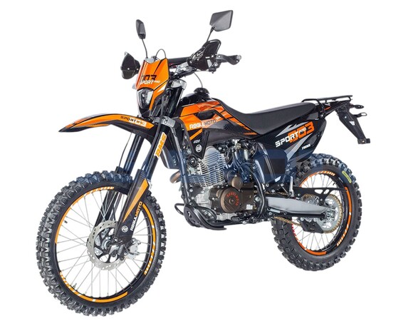 Regulmoto SK 250GY-5 – мотоцикл двойного назначения, созданный для эксплуатации как на дорогах общего пользования, так и на легком бездорожье. Топовая модель линейки лайт-эндуро мототехники известного китайского производителя Senke отличается высокой надежностью повседневной эксплуатации, отсутствием сложностей в сервисном обслуживании, простотой и легкостью управления.В надежной раме с защитными дугами Regulmoto SK 250GY-5 установлен 4-тактный одноцилиндровый двигатель с рабочим объемов в 250 см3, демонстрирующий максимальную мощность в 18 л.с. при 7000 оборотах в минуту и максимальный крутящий момент в 16,5 Hm при 5500 оборотах в минуту. Мотор с воздушным охлаждением, в котором можно без труда признать реплику двигателя известного японского производителя, оснащается балансировочным валом, что позволяет избавиться от излишней вибрации.Подвеска мотоцикла на колесах 21/18 дюймов со стальными ободьями представлена телескопической вилкой-перевертышем спереди, перья которой закрыты защитой, и стальным маятником с моноамортизатором сзади. Тормоза у мотоцикла дисковые, спереди установлен 4-поршневой суппорт, сзади – 2-поршневой.Оснащение Regulmoto SK 250GY-5 соответствует возлагаемым на мотоцикл эксплуатационным задачам: на байке вполне комфортно передвигаться по дорогам и легкому бездорожью, чему способствуют достаточно большой ход амортизаторов, защита цепи, пластиковая защита рук. Среди установленного оборудования присутствуют: аналоговая приборная панель, замок зажигания с защитой от попадания песка и пыли, полный комплект светового оборудования с дополнительными светодиодными поворотниками, встроенными в боковые обтекатели, зеркала заднего вида, стояночная и центральная подножки.Данная модель мотоцикла присутствует на отечественном рынке мототехники уже достаточно длительное время, за которое мотоцикл зарекомендовал себя легким в эксплуатации и неприхотливым в обслуживании аппаратом. О высокой надежности мотоцикла говорят солидный километраж пробегов при отсутствии серьезных неисправностей и позитивные отзывы обладателей Regulmoto SK 250GY-5.