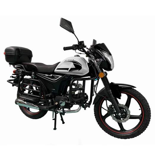 Для того чтобы ездить на мопеде, нет необходимости в регистрации в ГИБДД и страховке.Мопед поставляется с 110 кубовой поршневой и одноцилиндровым четырехтактным двигателем с воздушным охлаждением (маркировка - 1P39FMB). Двигатель работает ровно, имеет высокую мощность в широком диапазоне оборотов, что позволяет комфортно трогаться и быть уверенным, что двигатель не заглохнет в неподходящий момент.Двигатель имеет возможность легкого запуска с кнопки на руле, так как имеет электростартер, а при необходимости можно воспользоваться кикстартером.