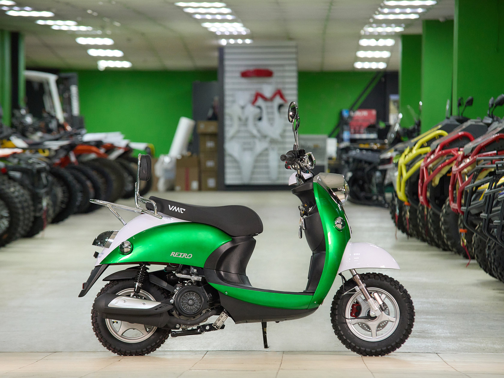Скутер VENTO RETRO 49cc (150) сигнализация (99кг/100кг) (RED/WHITE/GREEN (Италия))