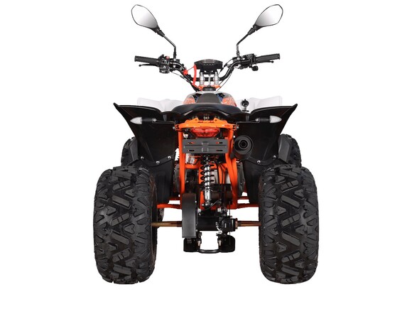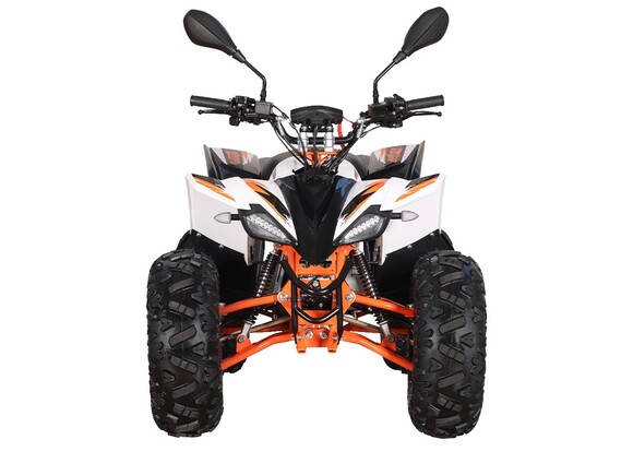 Квадрицикл KAYO AT110 – выносливая модель для освоения спортивной езды по бездорожью или помощи в хозяйстве. Хорошо подходит для детей и подростков, интересующихся поездками за пределами проторенных троп.Одноцилиндровый 4-тактный двигатель YX1P53FMH-2 с верхним распредвалом и воздушным охлаждением имеет объём 107 см3. Максимальная мощность 7,2 л.с. За подачу топлива отвечает карбюратор. Привод осуществляется на 2 колеса. Трансмиссия имеет автоматическую коробку передач со схемой F-N-R.Запуск осуществляется с помощью системы электронного зажигания. Имеется функция родительского дистанционного выключения двигателя.На квадрицикле используются колёса диаметром 8 дюймов. Амортизаторы подвески имеют длину 265 мм, задние можно регулировать. За торможение отвечает гидравлическая дисковая система. Клиренс составляет 110 мм, колёсная база 920 мм.Габариты модели 1360х840х880 мм, высота по седлу 660 мм, вес 98 кг. Ёмкость бака 4 литра.Наличие ПТС позволяет зарегистрировать технику на дорогах общего пользования.