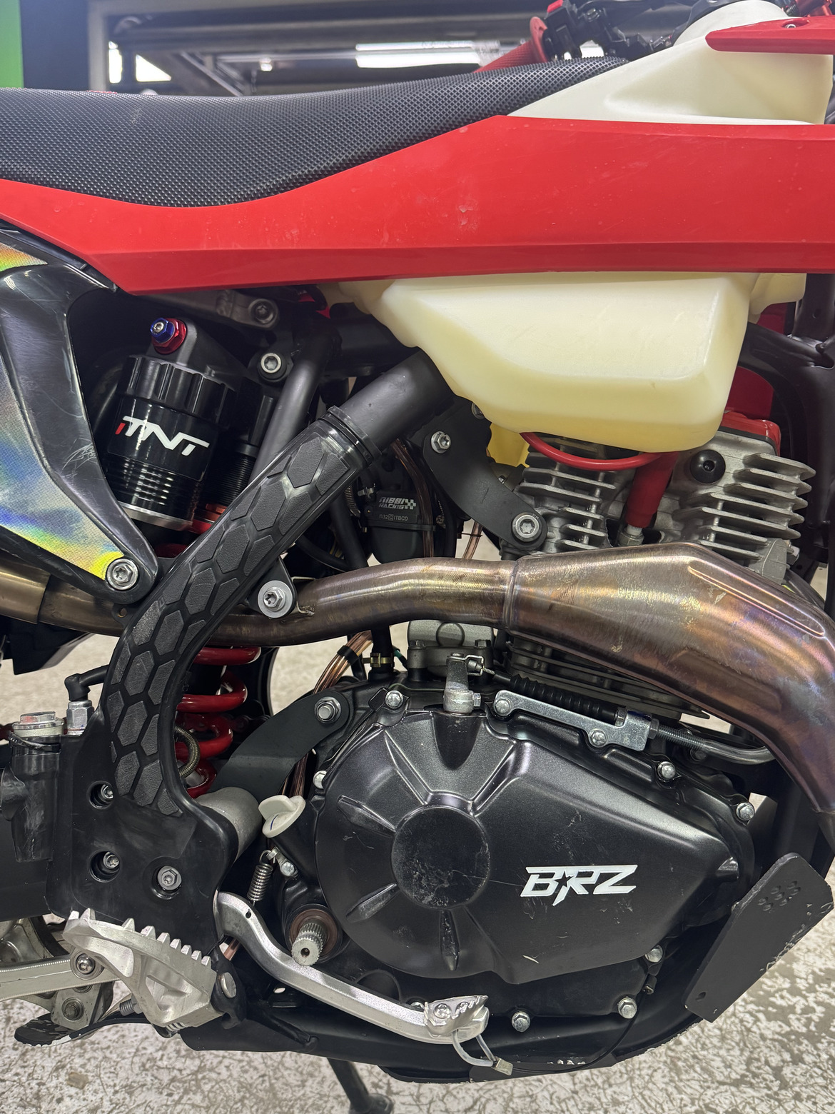 Мотоцикл BRZ X5S (ZS172FMM-7 4V 2023 г) RED - та самая всеми любимая модель четырехклапанной воздушки BRZ, на топовых компонентах. Мотоцикл построен на раме КТМ 19-22, мотор 264 кубиков с четырехклапанной головой, который работает в паре с карбюратором NIBBI RACING BLACK PE30. Передняя вилка MNT с регулировками сжатия и отбоя 950mm. Задний моноамортизатор MNT с прогрессией, выносным бачком и регулировками на сжатие и отбой 480мм. Рулевая траверса фрезерованная, X-TRIG. Обода алюминиевые Enduro X-Series, толстые спицы, фрезерованные алюминиевые ступицы. Установлена хорошая алюминиевая защита мотора. Немного погнут "хвост", в остальном всё работает в штатном режиме. Отличная возможность купить хороший боевой снаряд по супер цене.