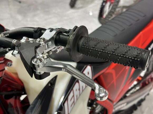 Комплектация - Карбюратор: Nibbi PWK 34; - Траверсы фрезерованные; - Обода усиленные AL7116; - Фара 2 EYE LED GENERATION 4, 50W; - Руль усиленный AL7075; - Звезда ведомая алюминиевая AL7075, 50 зубьев; - Маятник литой алюминиевый; - Диски тормозные AJ1, передний и задний; - Рычаги тормоза и сцепления длиной 270 мм.; Подножки: AJ1 копия S3 и копия KTM 24; - Цепь усиленная KMC 520 Pro; - Ручка газа Nibbi; - Счётчик моточасов; - Защита мотора и рамы; - Сидение AntiSkid.