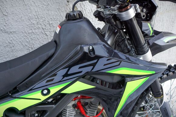 BSE Z6 - полноразмерный, многофункциональный и мощный эндуро мотоцкил.Z6 – идеальный мотоцикл для долгих эндуро путешествий! Благодаря наличию дополнительному топливному баку на 4 литра, заднему багажнику, удобному сиденью и наличию пассажирских подножек. В мотоцикле есть все необходимое, для комфортного продолжительного передвижения по бездорожью – яркая LED фара головного света, электростартер, широкий спортивный алюминиевый руль, защита рук, датчик моточасов. Идеально сбалансированный, устойчивый, мощный эндуро мотоцикл на прочнейшей усиленной стальной раме. Сердце Z6 – мощный, эластичный и надежный 250 кубовый Zongshen. Система подачи топлива – проверенный карбюратор Nibbi. Крепкий, надёжный и неприхотливый BSE Z6 обладает всеми качествами настоящего эндуро. Подойдёт, как и для среднего уровня катания, так и для продвинутого райдера. Z6 оснащается регулируемой подвеской MOJO Racing c большими ходами, рычагам задней прогрессии и вилкой “перевертышем”. Мощная гидравлическая тормозная система HSК Racing остановит байк в любых условиях. Алюминиевые колёсные диски с буксаторами, внедорожная резина, усиленная цепь – ваши возможности на бездорожье безграничны!