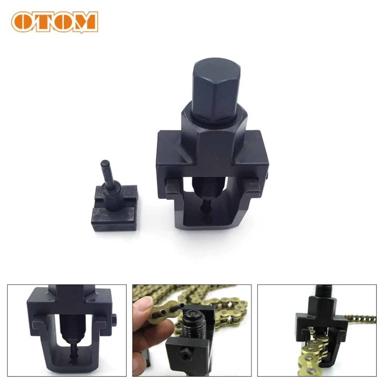 • Универсальный прочный клепочник OTOM — это профессиональный инструмент для сборки, разборки и клепки цепей мотоциклов, питбайков, квадроциклов, велосипедов и другой техники. Надежно подходит для обслуживания большинства стандартных цепей, включая размерности от 420 до 535. В отличие от дешевых аналогов, этот инструмент не выгибается и не ломается — рассчитан на интенсивную и долгосрочную эксплуатацию. Позволяет быстро и надёжно выдавить палец цепи, расклепать или заклепать замок.