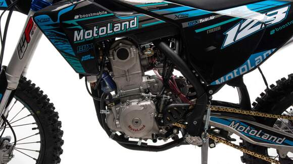 Топовый мотоцикл линейки Motoland выглядит соответствующе — стильно и солидно. Без лишнего пафоса, но с уверенностью в собственном превосходстве над аналогами. Как и другие модели Motoland, кроссовые 450 кубовый мотоцикл покрыт комбинированным пластиком, который не ломается при сгибании. Все стыки идеально подогнаны, наклейки ровные. Кроссовый мотоцикл доступен в синем цвете — внешний вид кросса подчёркивает несгибаемый характер и нацеленность на бескомпромиссную спортивную борьбу.