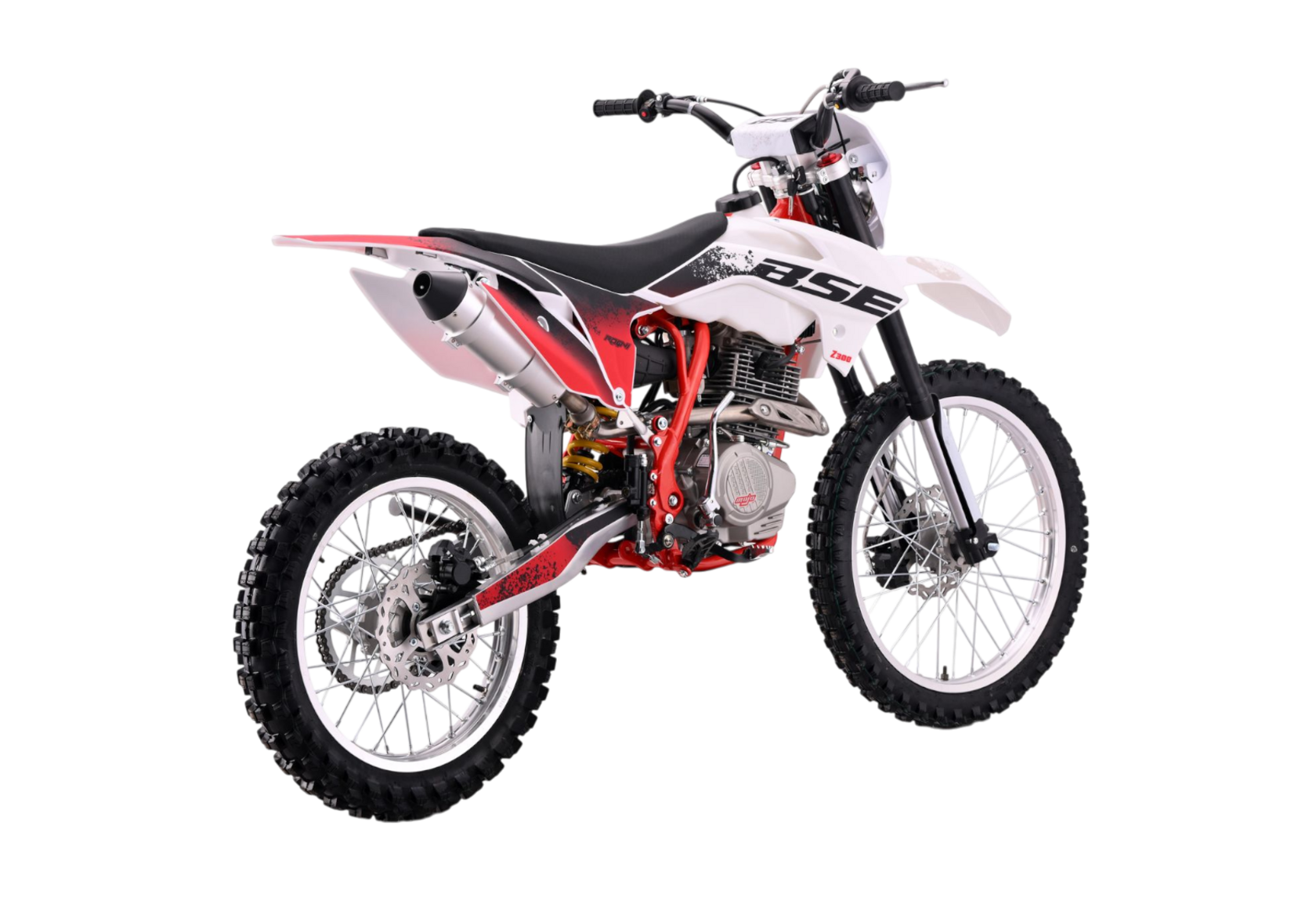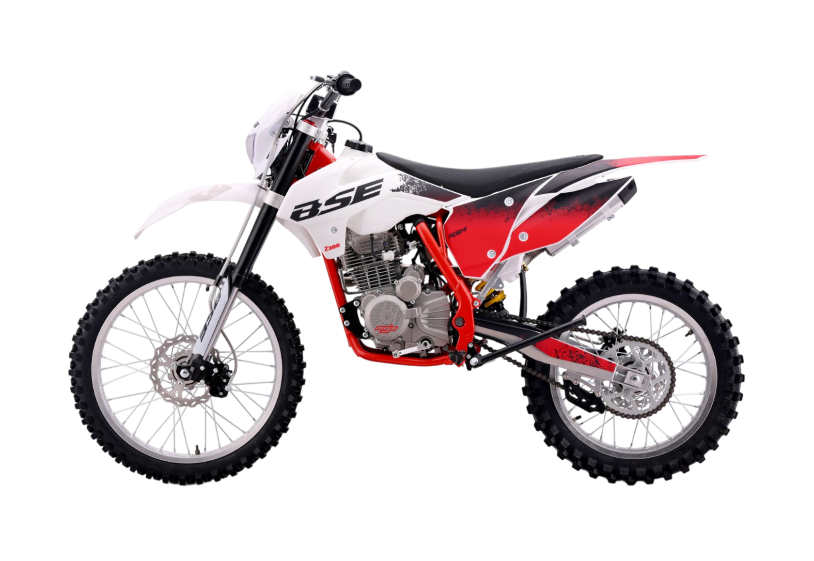 Представляем BSE Z3.00 — настоящий кроссовый мотоцикл из легендарной Z-серии, созданный для тех, кто ищет адреналин, свободу и уверенную управляемость вне асфальта. Яркий красно-белый дизайн, агрессивный силуэт и серьёзная техническая начинка делают эту модель идеальным выбором для трейлов, мотокросса и активного отдыха в условиях бездорожья.