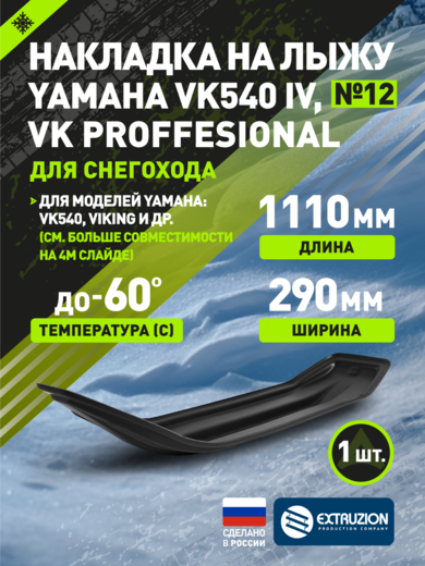 Накладка на лыжу №12 для снегохода Yamaha VK540 IV, VK PROFFESIONAL 1110*290*6 (1шт) pitbikemarket.ru