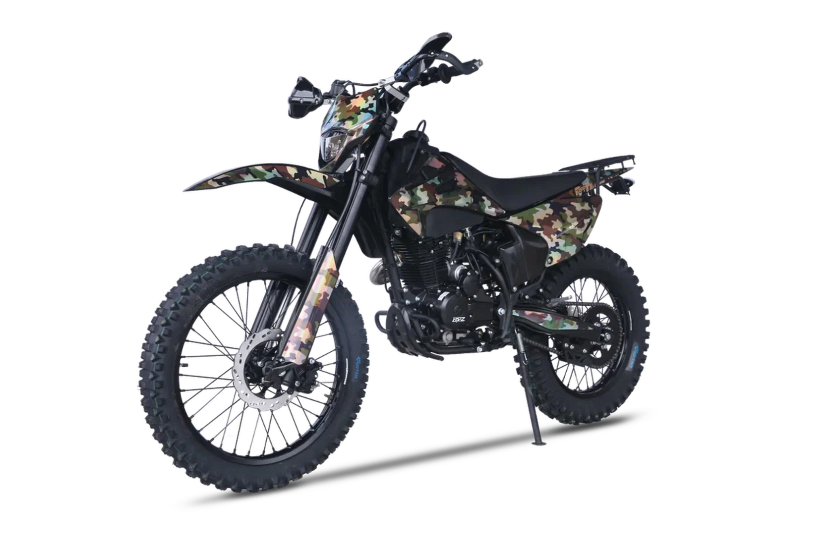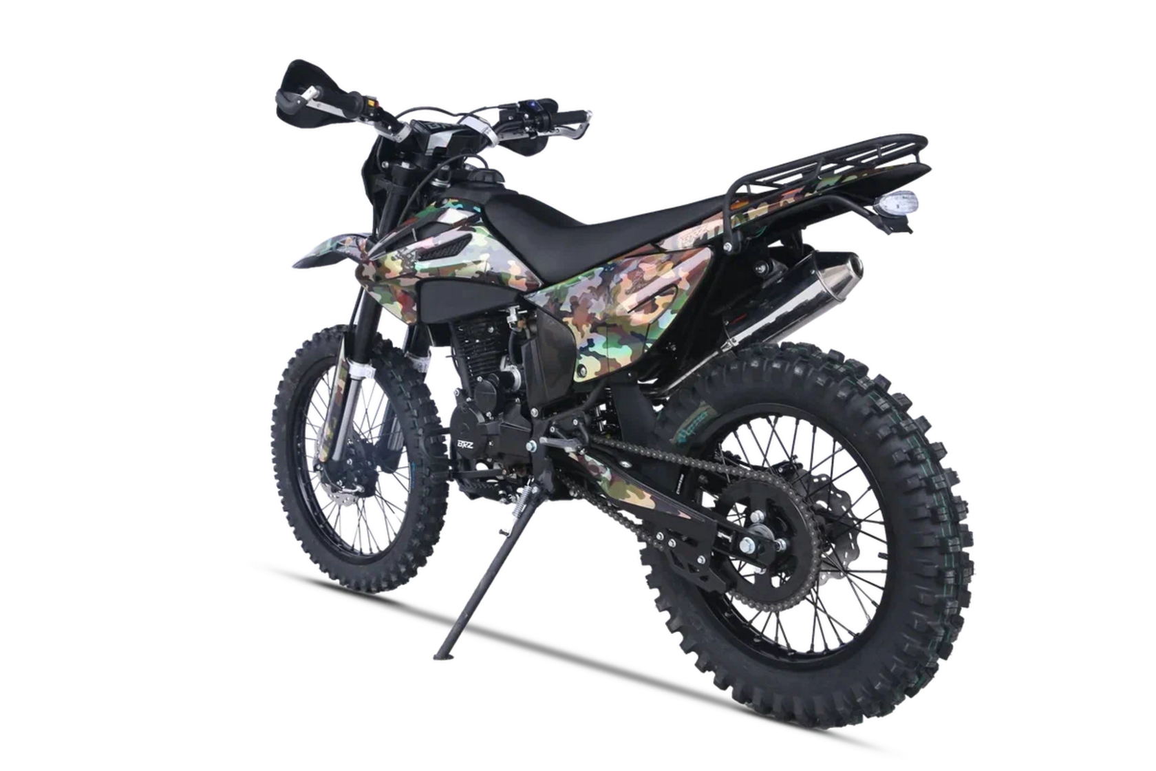 BRZ Z7 CB250D представляет собой универсальный мотоцикл, одинаково хорошо подходящий как для экстремального эндуро, так и для повседневных практических нужд. На мотоцикл установлен двигатель Zongshen 165FMM рабочим объёмом 250 куб.см., зарекомендовавший себя как надёжный агрегат, эффективно работающий совместно с карбюратором Mikuni, способствующим полному раскрытию мощности мотора. Среднерослые габариты делают этот байк комфортным для подавляющего числа пользователей.Подвеска модели представлена нерегулируемой вилкой MNT, чьи заводские настройки оптимальны для широкого спектра условий эксплуатации, избавляя владельца от хлопот по настройкам. Задний амортизатор оборудован линком прогрессии, обеспечивающий комфорт даже на неровностях.Стандартная комплектация включает полный комплект необходимых аксессуаров: защита рук, приборную панель, задний багажник, яркую светодиодную оптику и шины Gema с мягким составом протектора, установленные на прочные обода. Для тех, кому необходим выносливый спутник для лесных маршрутов или выездов на природу, BRZ Z7 CB250 готов стать отличным выбором.