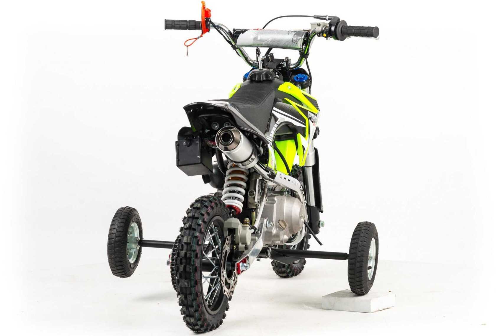 Комплектация Гидравлическая тормозная система. Ограничитель ручки газа. Дополнительные колесики. Выхлопная система трубчатым муфлером, делает мотоцикл тихим. Руль стальной, 22мм. Рычаги складные. Защита двигателя.