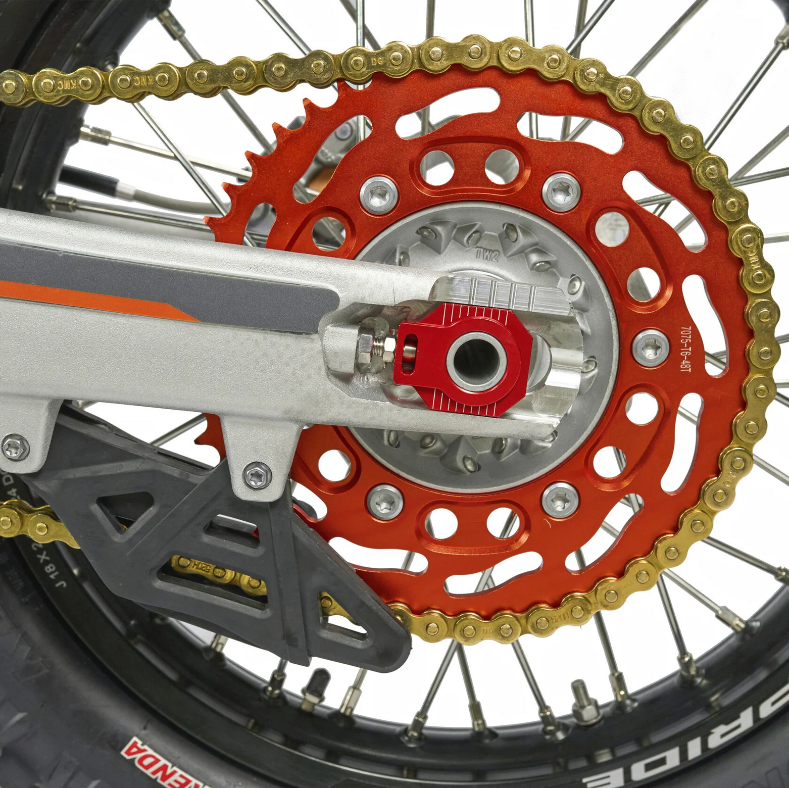 КомплектацияЭлектронная приборная панель, противоскользящее сиденье, защита рамы от протирания ботинками, подножки «AJ1» (алюминий 6063 с шипами), подножка боковая «AJ1» (алюминий 7075-Т6), невозгораемый воздушный фильтр «AJ1» – Twin Air с увеличенной площадью, ведомая звезда «AJ1» (520, алюминий 7075-Т6), защита рук, грипсы OTOM/Lock-On, передние и задние буксаторы «AJ1», откидные алюминиевые рычаги 270, алюминиевая лапка КПП, пульт света КТМ, LED фара 5 линз, моточасы, фрезерованная траверса X trig .ДвигательМодель оснащена надежнейшим 1-цилиндровым 4-х тактным двигателем ZONGSHEN 172FMM-3A с воздушным охлаждением объёмом 249,9 см3, который выдаёт 21 л.с.ПодвескаПередняя вилка "MNT" перевернутого типа T7 48- 910mm с регулировкой на сжатия и отбой. Моноамортизатор "MNT" также с регулировками. Система прогрессии, обеспечивает равномерную, мягкую работу и увеличивает длину рабочего хода подвески. Также ось крепления маятника совпадает с осью крепления ножки. Это существенно улучшает развесовку мотоцикла.КолесаСпереди и сзади установлены антибуксаторы бренда "AJ1", которые притягивают покрышку к ободу, позволяя ездить по бездорожью при низком давлении в камерах, не давая покрышке проворачиваться во время езды. Размер передней покрышки: 80/100 R21. Размер задней покрышки: 120/90-R18. Модель комплектуется "жирной" резиной "KENDA". Все эти характеристики позволяют мотоциклу отлично себя чувствовать в песке и грязи.Тормозная системаПолностью гидравлическая с армированными шлангами. Спереди и сзади установлен двухпоршневой суппорт. Данная конфигурация тормозных механизмов, позволяет быстро и безопасно оттормаживаться даже в самых непростых условиях.Сухой вес мотоцикла 115кг
