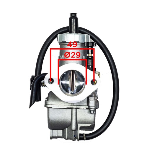 Карбюратор NIBBI PE28 FL — производительное и надёжное решение для питбайков и мотоциклов с двухклапанными моторами объёмом от 190 до 270 см³. Отличается простотой в установке и обслуживании: карбюратор крепится к впускному коллектору на 2 болта (шпильки), благодаря чему его снятие и установка занимает минимум времени и не требует специального инструмента.