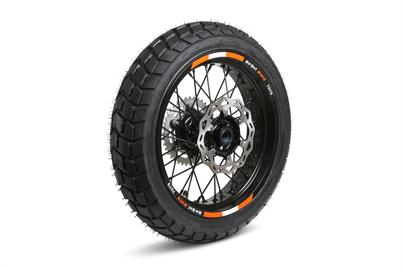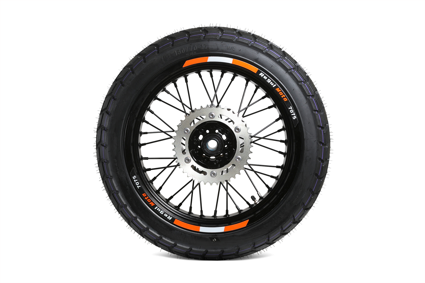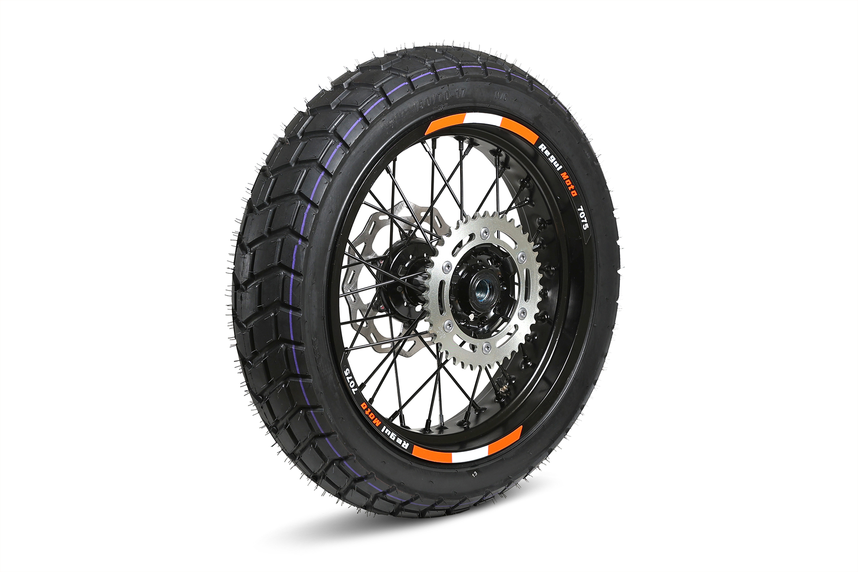 • Задний диск с шиной 150/70-17, ось 25 мм, тормозной диск 220 мм, звезда 520-40T, ширина ступицы 167 мм.