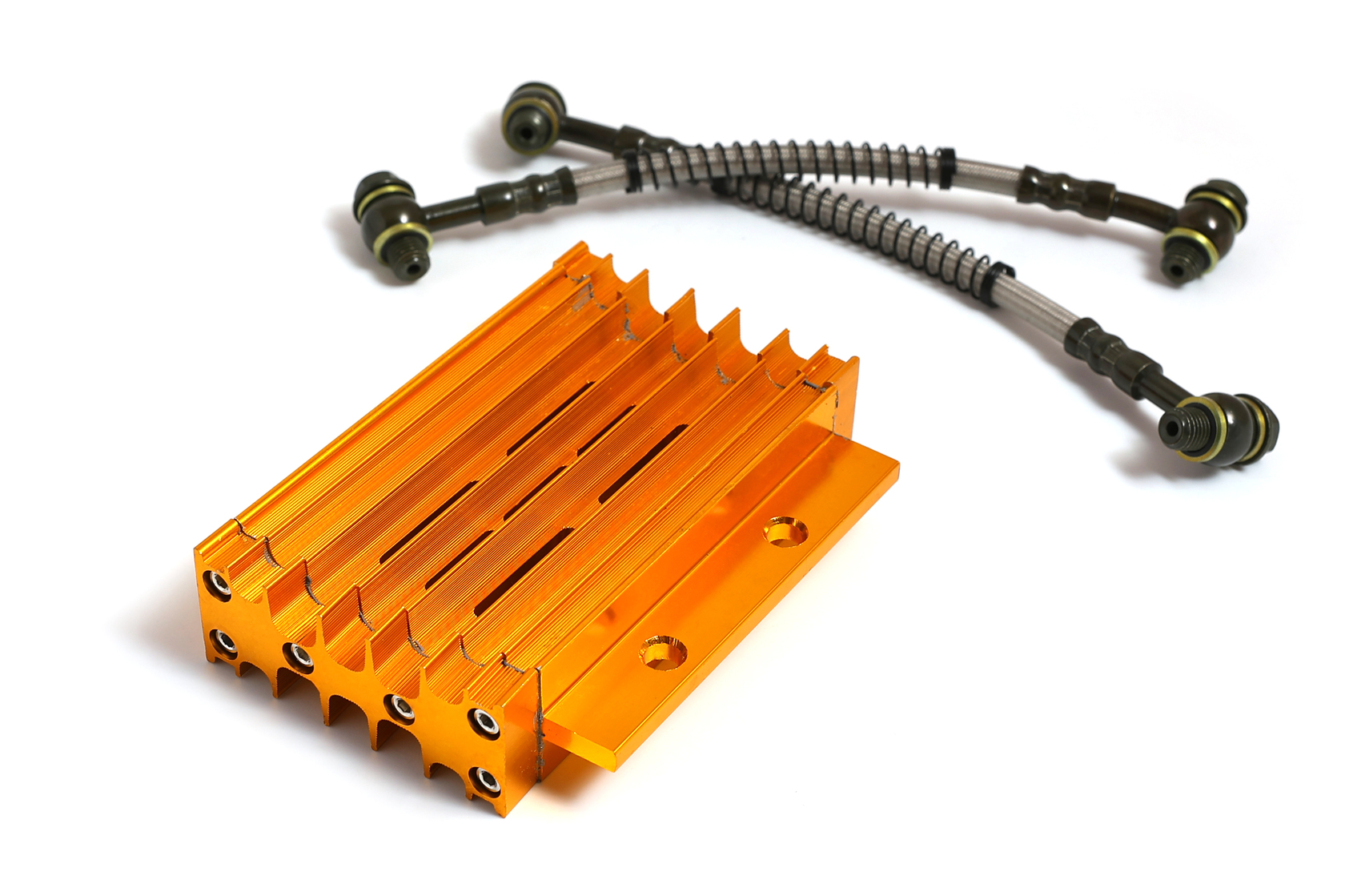• Высококачественный комплект радиатора масляного охлаждения с корпусом из прочного CNC-алюминия, ярко-золотого анодированного цвета. Разработан для установки на 90% питбайков и мопедов с объёмом двигателя от 125 до 190 см³. Обеспечивает эффективное охлаждение масла, защищая двигатель от перегрева и продлевая его срок службы.