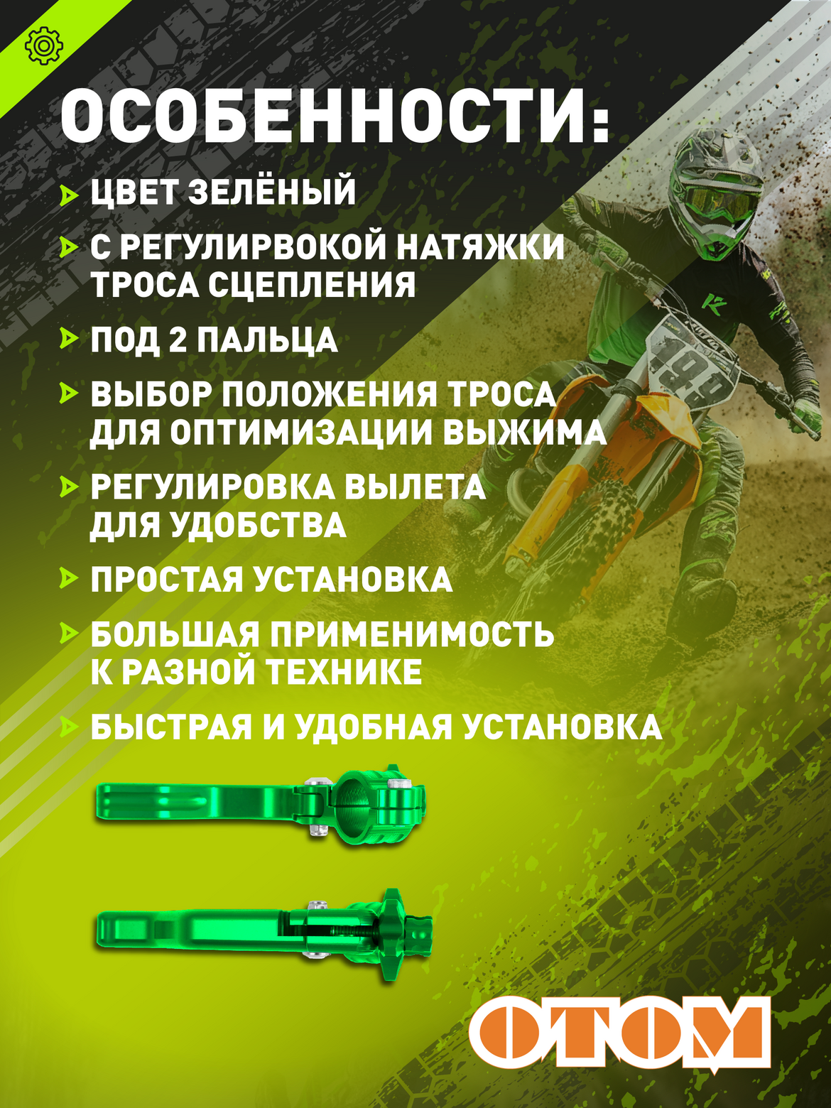 • • Устанавливается практически на любой тип мототехники с тросовым сцеплением