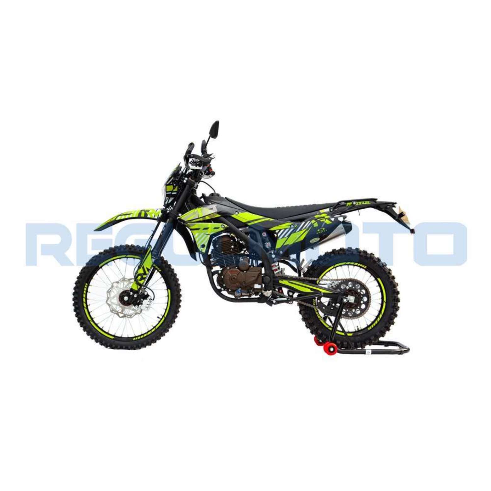 Стильный и доступный байк многоцелевого назначения найдет применение в качестве надежного аппарата для покорения бездорожья, а также может использоваться для решения широкого круга утилитарных задач и передвижения по дорогам общего пользования.В основе конструкции Regulmoto ZR 250 – мощная стальная рама, поставленная на колеса 21/18, которые наилучшим образом подготовлены к офф-роаду. Ободья и ступицы колес изготовлены из алюминия, также установлены усиленные спицы и буксаторы, надежно фиксирующие покрышки на ободе. Подвеску эндуро-байка представляют длинноходная телескопическая вилка-«перевертыш» спереди и стальной маятник с прогрессией и моноамортизатор с компенсационным резервуаром сзади. Работу амортизаторов при необходимости можно настроить при помощи регулировки сжатия/отбоя.Силовая установка мотоцикла представлена одноцилиндровым 4-тактным двигателем Zongshen ZS172FMM-5 (PR250) с воздушным охлаждением рабочим объемом в 249,9 см3 с балансировочным валом; за подготовку топливной смеси отвечает карбюратор Nibbi PE30. Технический потенциал надежного и производительного двигателя позволяет демонстрировать 21 лошадиную силу максимальной мощности и 18 Hm максимального крутящего момента.Regulmoto ZR 250 PR также привлекает внимание отличными внешними данными: мотоцикл комплектуется крепким и гибким пластиком с ярким дизайном, выполненным в узнаваемой стилистике популярной модели известного производителя.