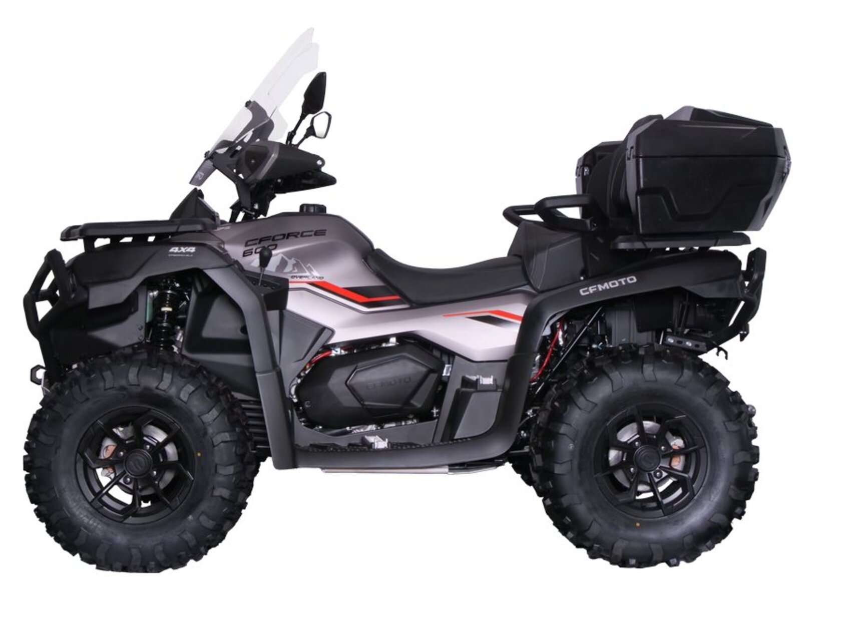 Вдохновленный универсальным флагманом CFORCE 1000 OVERLAND EPS, CFORCE 600 OVERLAND EPS — это квадроцикл, который уже с завода заточен под приключения, он готов везти вас и все необходимое, куда бы не вели маршруты. Остается только выехать на бездорожье и начать путешествие!Производительность Двигатель обладает высокой мощностью с плавной отдачей во всем диапазоне оборотов. Уже проверенные изменения таких деталей, как головка цилиндра, распределительный вал, поршни и поршневые кольца, повысили КПД силового агрегата. Этому также способствовали оптимизированные системы впуска и выпуска.Уникальный дизайнПолюбившийся со времен выхода первого 1000-го OVERLAND серый графитовый цвет с рисунками гор и черно-красными наклейками выгодно выделяет CFORCE 600 OVERLAND EPS в любой квадро-компании.Полная защитаВ стандартную комплектацию входит ветровое стекло, устойчивое к ультрафиолету и воздействиям внешней среды. Оно не только защищает водителя от ветра, дождя и грязи, но и обеспечивает превосходную видимость во время движения.На CFORCE 600 OVERLAND EPS установлены бамперы, защищающие всю переднюю или заднюю части квадроцикла, а также световые LED-приборы. Изготовленные из стали, бамперы просты в установке и эксплуатации.Алюминиевая защита полностью закрывает днище квадроцикла (толщина 5 мм), а пластиковая — рычаги подвески (толщина 8 мм).ВместительностьМодель имеет большой стильный кофр для хранения вещей вместимостью 90 литров, в него помещается два шлема открытого типа и один полноразмерный шлем. Кофр закрывается на ключ и защищен от попадания брызг и капель воды, просто устанавливается, позволяя легко и удобно упаковывать все необходимые вещи для путешествий, охоты или рыбалки.Кроме того, преимущества CFORCE 600 OVERLAND EPS включают:– Два режима эксплуатации (Normal и Work)