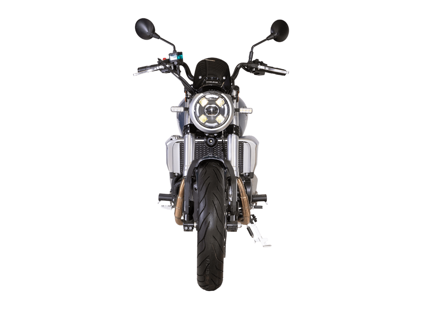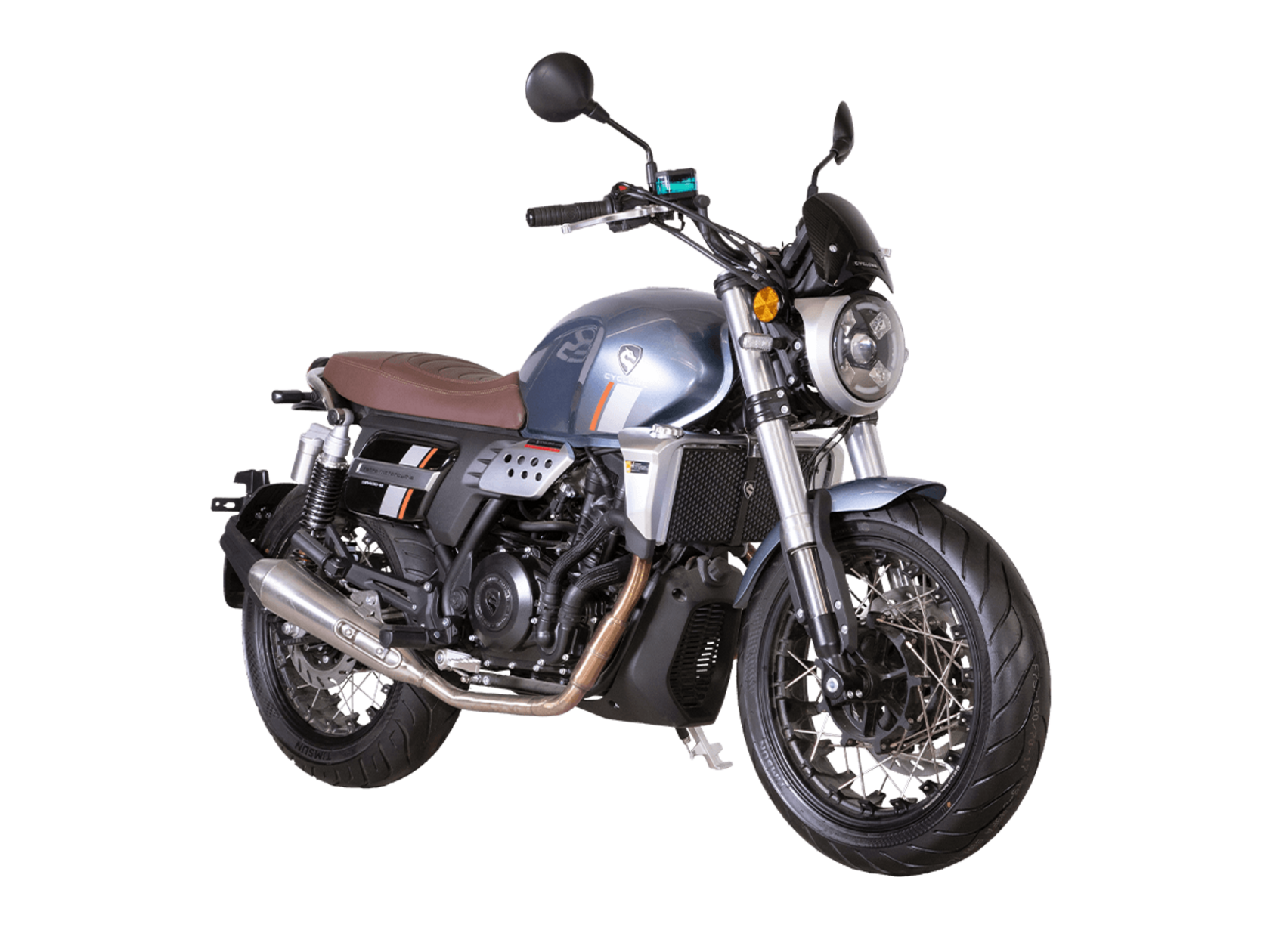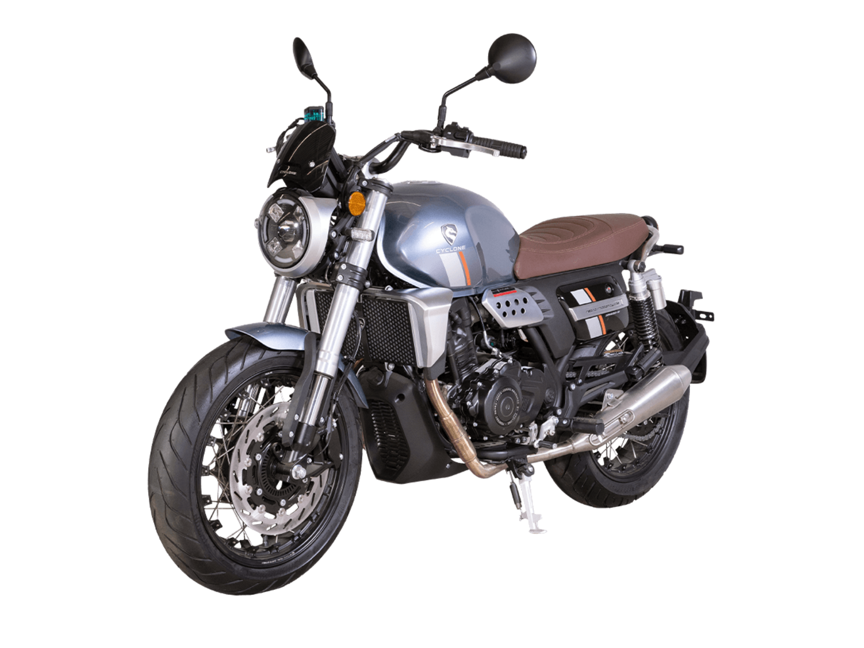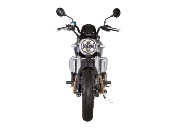 CYCLONE RE401 (SR400-B) 2024 – классик, в котором подчёркнутая простота объединяется с современными технологиями. Данная модель является более продвинутой версией модели RE3 (SR-400) – мотоцикл обладает более современным дизайном, снабжён стильными металлическими накладками на радиатор, а также топливным баком, объём которого увеличен до 20 литров.Двухцилиндровый четырёхтактный двигатель объёмом 401 см3 выдаёт 43 л.с. на 9500 об/мин. Инжекторный впрыск топлива с инжектором BOSCH увеличивает топливную экономичность, а также позволяет добиться высокой приёмистости и неприхотливости агрегата. Жидкостная система охлаждения не допустит перегрева двигателя даже при самом агрессивном вождении. На мотоцикл установлена 6-ступенчатая механическая коробка передач.Максимальная скорость мотоцикла составляет 150 км/ч.RE401 оснащён классическими спицованными колёсами диаметром 17 дюймов. Колёса обуты в бескамерные покрышки TIMSUN. С неровностями дороги эффективно справляются телескопическая вилка перевёрнутого типа спереди и маятник с двумя амортизаторами сзади. Ход передней подвески составляет 130 мм, задней – 81 мм. Оба компонента подвески являются регулируемыми. Эффективное и безопасное замедление с любых скоростей обеспечивают гидравлические дисковые тормоза с ABS спереди и сзади.Клиренс мотоцикла составляет 170 мм. Объём топливного бака – 20 л. Снаряжённая масса – 186 кг.Из дополнительного оборудования можно выделить USB-порт и датчики давления в шинах.Мотоцикл сочетает в себе отличные технические характеристики, комфорт и надёжность, что позволяет вам ощутить настоящую свободу на любой дороге.
