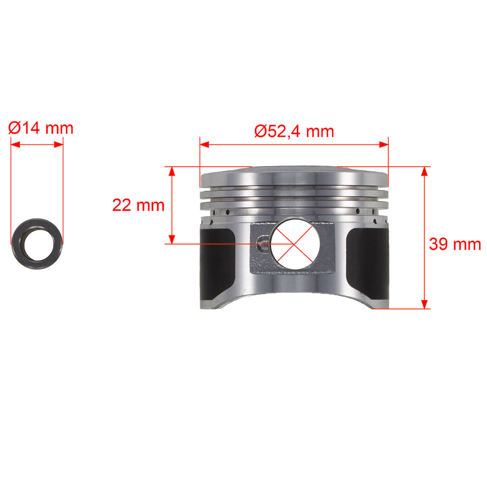 диаметр отверстия под поршневой палец = 14 мм