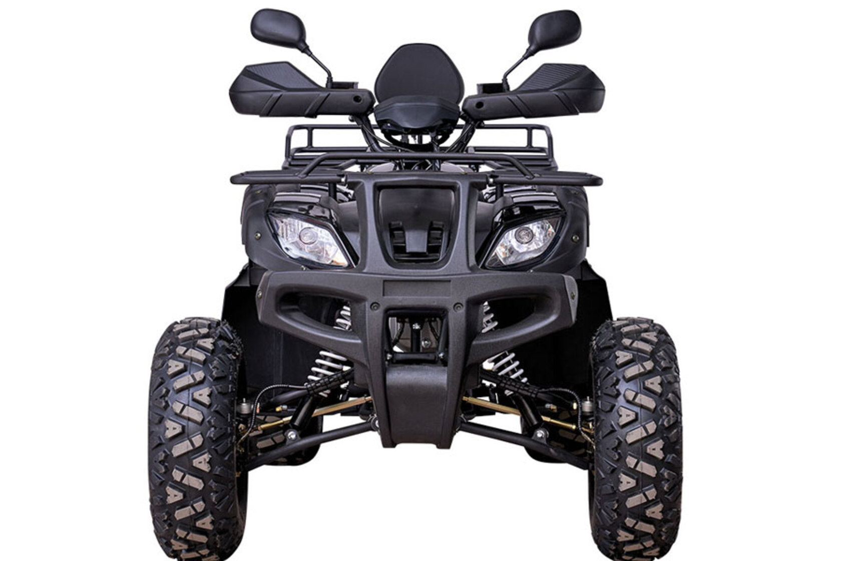 Максимальная нагрузка - до 160 кг. На квадроцикле 150 установлен передний и задний багажники, которые выдерживают нагрузку до 100кг каждый.