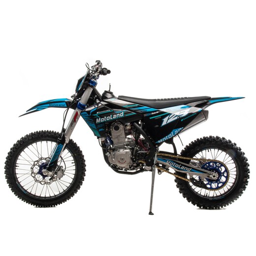 Топовый мотоцикл линейки Motoland выглядит соответствующе — стильно и солидно. Без лишнего пафоса, но с уверенностью в собственном превосходстве над аналогами. Как и другие модели Motoland, кроссовые 450 кубовый мотоцикл покрыт комбинированным пластиком, который не ломается при сгибании. Все стыки идеально подогнаны, наклейки ровные. Кроссовый мотоцикл доступен в синем цвете — внешний вид кросса подчёркивает несгибаемый характер и нацеленность на бескомпромиссную спортивную борьбу.