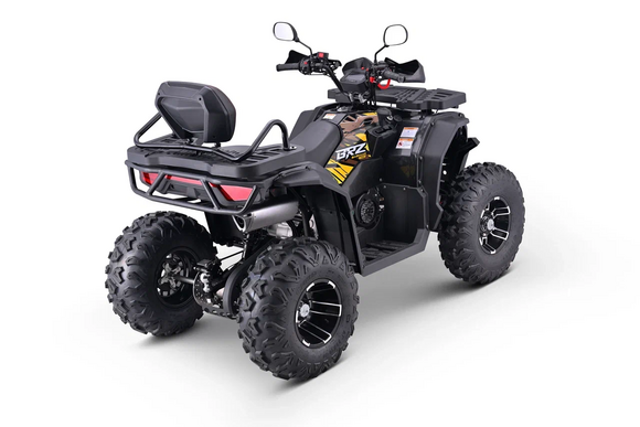 Квадроцикл BRZ ATV 400cc 4x4 — это надёжный утилитарный внедорожник, идеально подходящий для активного отдыха, охоты, фермерских работ и покорения пересечённой местности. Оснащённый мощным 4-тактным двигателем объёмом 386 см³ с жидкостным охлаждением, он развивает до 31 лошадиных сил и уверенно справляется с бездорожьем, затяжными подъёмами и тяжёлой нагрузкой.Полный подключаемый привод 4x4 обеспечивает отличную проходимость в самых сложных условиях, а автоматическая трансмиссия с задней передачей делает управление простым и понятным даже для новичков. Электростартер облегчает запуск двигателя, особенно в холодную погоду, а наличие задней передачи упрощает манёвры в ограниченном пространстве.Квадроцикл оборудован независимой подвеской спереди и сзади, что гарантирует плавный ход и стабильность даже на неровных трассах. Просторное двухместное сиденье, багажные платформы спереди и сзади, светодиодная фара и задний стоп-сигнал делают поездку комфортной и безопасной. Большие внедорожные шины 12/12 обеспечивают уверенное сцепление с различными типами поверхности — от песка до грязи.Сухая масса квадроцикла составляет 250 кг что делает его устойчивым при движении, но при этом достаточно манёвренным. Топливный бак объёмом 15 литров позволяет проходить длительные маршруты без дозаправки, а прочная рама выдерживает до 180 кг полезной нагрузки.BRZ ATV 400cc 4x4 — это техника, которая сочетает в себе мощность, проходимость и комфорт. Отличный выбор для тех, кто ищет универсальное решение для работы и отдыха вне дорог.