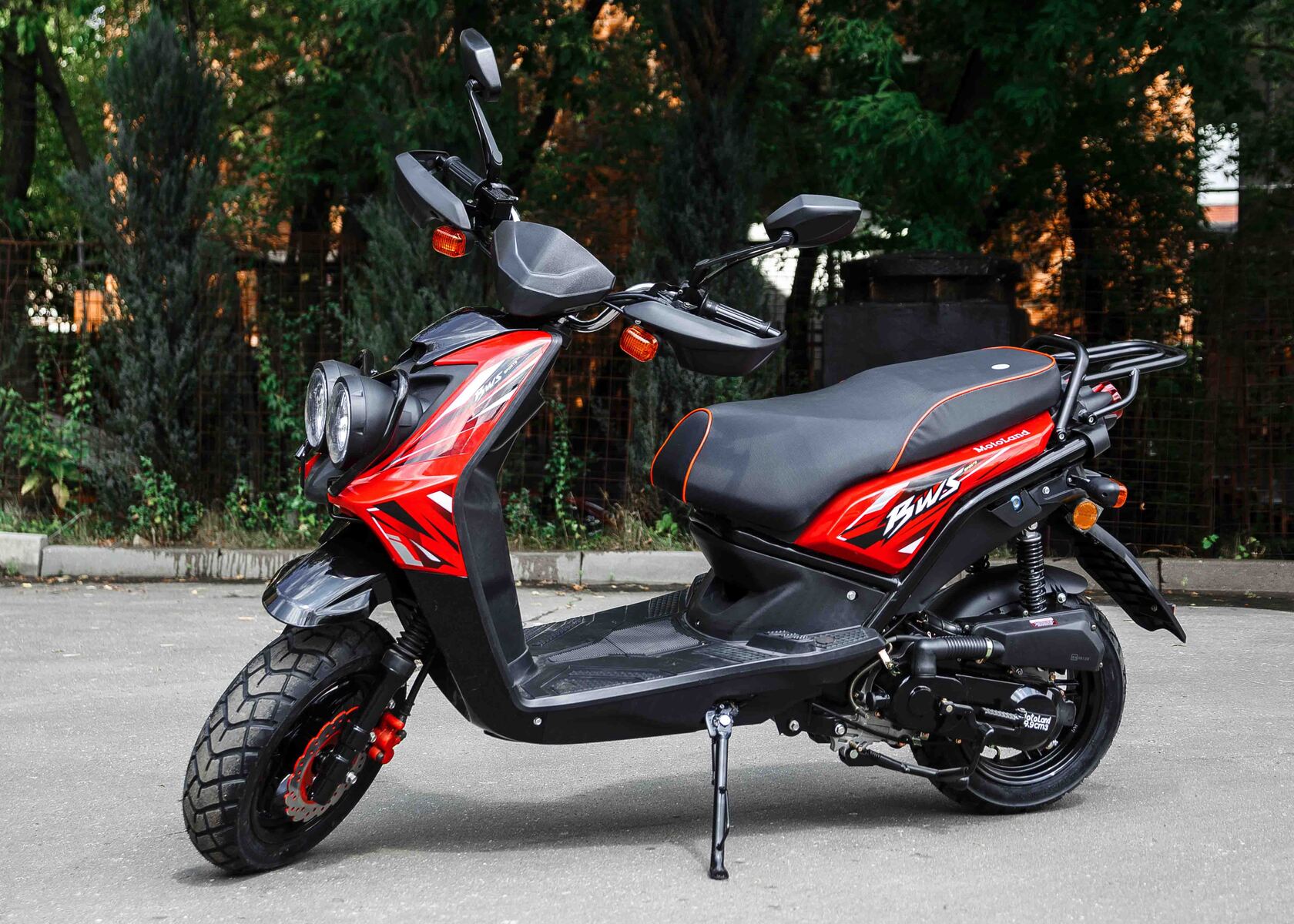 Мощный скутер Motoland BWS 50 — это отличный вариант для загородного катания и поездок на рыбалку.
