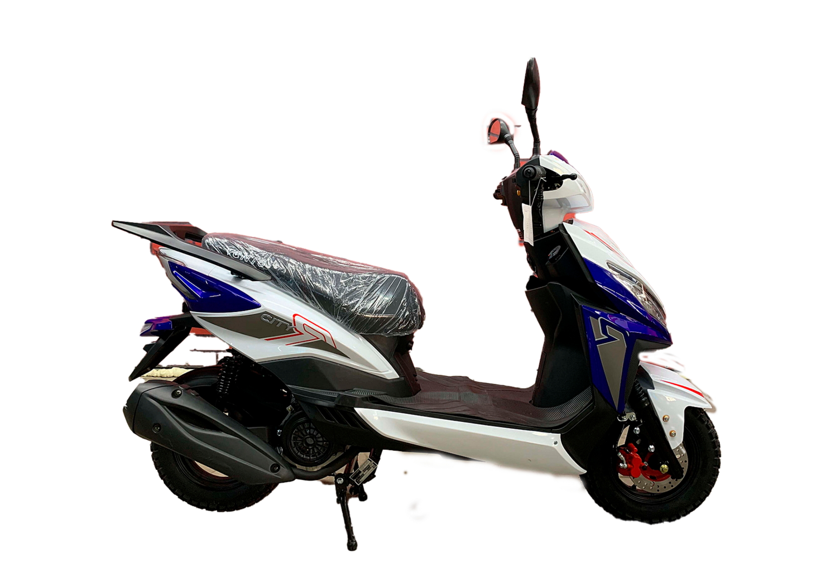 Комплектация Зеркала заднего вида, багажник, центральная подножка, дисковые передние и барабанные задние тормоза.