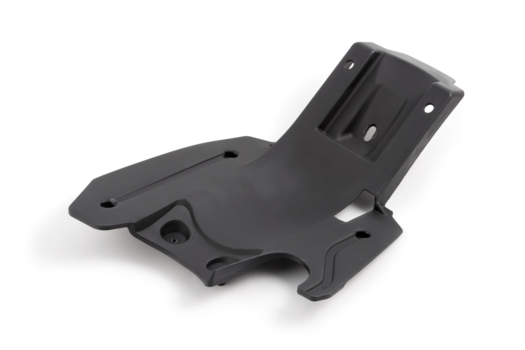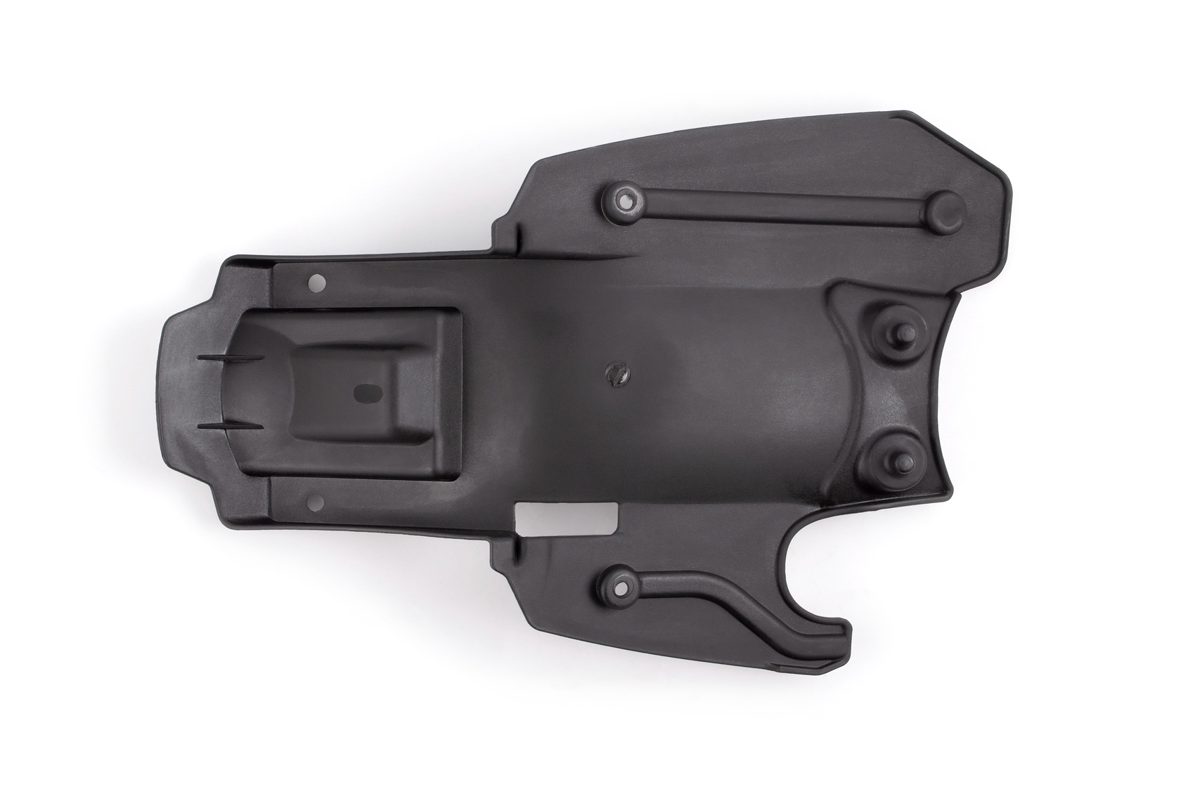 Как видно на фото, пластик имеет специальную рельефную форму с ребрами жесткости и выштамповками. Это придает детали дополнительную прочность на изгиб и скручивание, предотвращая излом при жестких приземлениях.