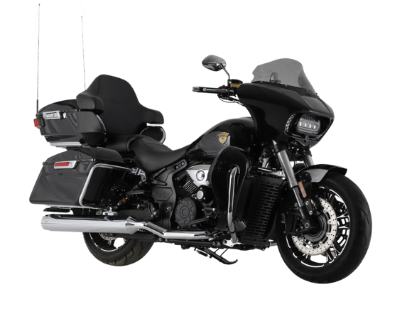 GROZA YL800 – великолепный круизёр, который подойдёт как для повседневной городской езды, так и для комфортного перемещения на длинные дистанции. Его дизайн исполнен в классическом стиле, соответствующем всем канонам данного типа мотоциклов.Двухцилиндровый V-образный двигатель объёмом 800 см3 мощностью 61 л.с. при высоких показателях динамики и отличном крутящем моменте способен разгонять аппарат до 180 км/ч. Инжекторный впрыск топлива с инжектором DELPHI увеличивает топливную экономичность, а также позволяет добиться высокой приёмистости и неприхотливости агрегата. Привод на ведущее колесо осуществляется ремнём знаменитой марки USA Gates. Жидкостная система охлаждения не допустит перегрева мотора даже при самом агрессивном вождении.Аппарат имеет 6-ступенчатую механическую коробку передач с классической схемой “1-N-2-3-4-5-6”. На мотоцикл установлены литые алюминиевые диски диаметром 17 дюймов. Ширина передней покрышки – 140 мм, задней – 200 мм. С неровностями дороги эффективно справляются телескопическая вилка перевёрнутого типа спереди и маятник с двумя газонаполненными амортизаторами сзади. Подвеска имеет 7 ступеней регулировки, что обеспечивает лёгкую перестройку на различные режимы езды. Для всего класса круизёров такая опция – большая редкость. Эффективное и безопасное замедление с любых скоростей обеспечивают гидравлические дисковые тормоза спереди и сзади от компании NISSIN.Аппарат оснащён своеобразной и очень привлекательной по дизайну светодиодной оптикой, а также бортовым компьютером и ярким и информативным дисплеем.Мотоцикл сочетает в себе отличные технические характеристики, богатое оснащение, комфорт и надёжность, что позволяет вам ощутить настоящую свободу на любой дороге.