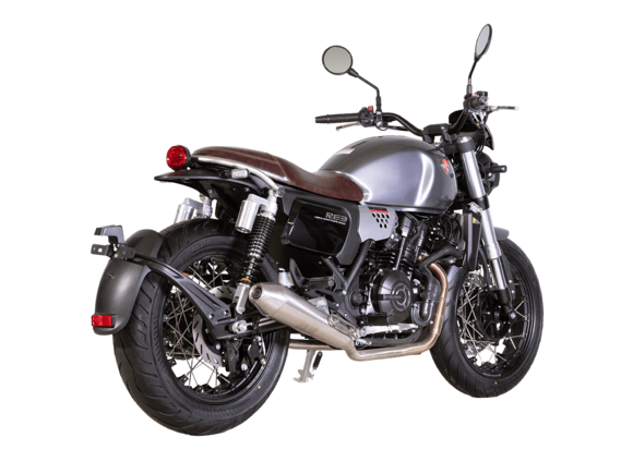 CYCLONE RE3 (SR400) – классик, в котором подчёркнутая простота объединяется с современными технологиями.Двухцилиндровый четырёхтактный двигатель объёмом 401 см3 выдаёт 43 л.с. на 9500 об/мин. Максимальный крутящий момент достигается на 8000 об/мин и составляет 34 Н·м. Инжекторный впрыск топлива с инжектором BOSCH увеличивает топливную экономичность, а также позволяет добиться высокой приёмистости и неприхотливости агрегата. Жидкостная система охлаждения не допустит перегрева двигателя даже при самом агрессивном вождении. На мотоцикл установлена 6-ступенчатая механическая коробка передач.Максимальная скорость мотоцикла составляет 140 км/ч.RE3 оснащён классическими спицованными колёсами диаметром 17 дюймов. Колёса обуты в бескамерные покрышки TIMSUN. С неровностями дороги эффективно справляются регулируемая телескопическая вилка перевёрнутого типа спереди и маятник с двумя амортизаторами сзади. Ход передней подвески составляет 110 мм, задней – 81 мм. Эффективное и безопасное замедление с любых скоростей обеспечивают гидравлические дисковые тормоза с ABS спереди и сзади.Клиренс мотоцикла составляет 145 мм. Объём топливного бака – 19 л. Снаряжённая масса – 186 кг.Из дополнительного оборудования можно выделить USB-порт, подсветку пультов и датчики давления в шинах.Мотоцикл сочетает в себе отличные технические характеристики, комфорт и надёжность, что позволяет вам ощутить настоящую свободу на любой дороге.