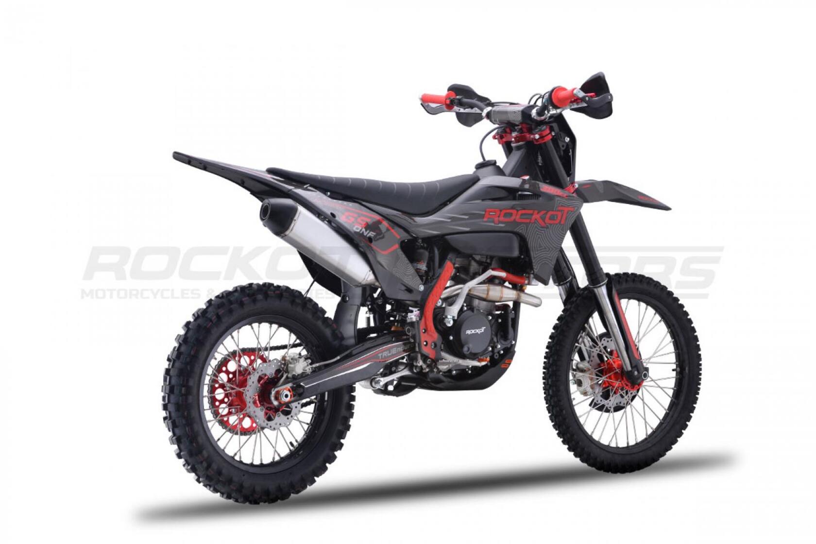Мотоцикл кроссовый ROCKOT GS ONE Blackout-300. В стальную, усиленную раму заключен 300 кубовый двигатель Zongshen 4Т 177ММ с водяным охлаждением и балансирным валом гасящим вибрации. Мотоцикл выгодно выделяется интересной и сбалансированной комплектацией, качественной сборкой, неповторимым и интересным дизайном в стилеGASGAS"21. Подвеска полностью регулируемая.Спередителескопическая вилка KKE перевернутого типа 48/53/60-940 однокартриджная регулируемая, с настройкой отбоя и сжатия.Задняя подвеска:моноамортизатор KKE 470 мм регулируемый, с настройкой сжатия и отбоя. Прогрессия с рычажной системойУстановлена светодиодная фара и полнофункциональная LED приборная панель.