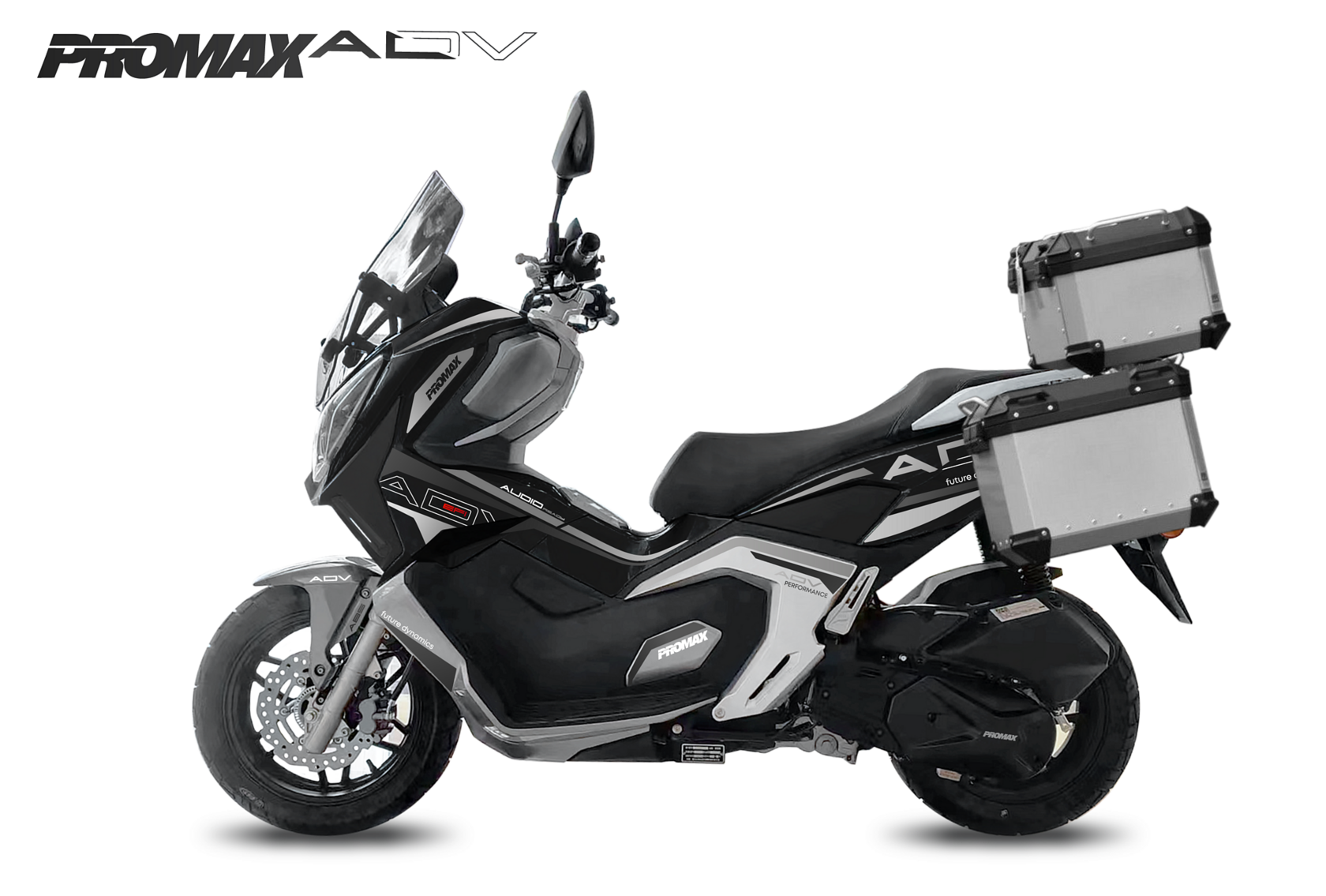 Обновленный МаксиСкутер PROMAX ADV EFI (инжектор) (кроссовер в мире скутеров) в новой комплектации "EXTRA", в которую входит:Новый инжекторный ДВС (на базе разработок компании HONDA)Аудио-подготовка (магнитола USB, BT) c колонками. С возможностью подключения телефона.Кофр задний и боковые с замками.Защитный бампер (от падений).Антиблокировочная система ABS.МаксиСкутер PROMAX ADV создан на базе модели кросс-скутера HONDA ADV. Компания PROMAX сотрудничает с HONDA и предлагает более доступный, но качественный аналог скутера HONDA ADV EFI.Скутер PROMAX ADV EFI доступен в нескольких модификациях с двигателями объемом 49, 150, 200, 250, 300 и 350 кубических сантиметров. Имеется также спортивная модель с 500 куб.см двигателем EFI (инжектор). Модели PROMAX ADV EFI оснащены инжекторной системой DELPHI, как и партнера компании HONDA. При наличии маркировки 49куб.см, постановка на учет не требуется.Все скутеры PROMAX проходят сложную систему контроля качества, и производитель предоставляет 3-летнюю гарантию.МаксиСкутер PROMAX ADV 250 оснащен одноцилиндровым четырехтактным инжекторным двигателем объемом 200 кубических сантиметров, мощностью до 22 л.с.Оборудование PROMAX ADV включает:- Полностью светодиодные фары компании SEUL TEHNOLOGI