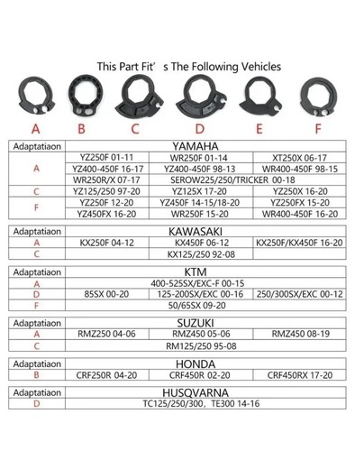 • KTM: SX/EXC-F 400-525 (2000-2015), SX85 (2000-2020), SX/EXC 125-300 (2000-2016), SX/EXC 250-300 (2000-2012)