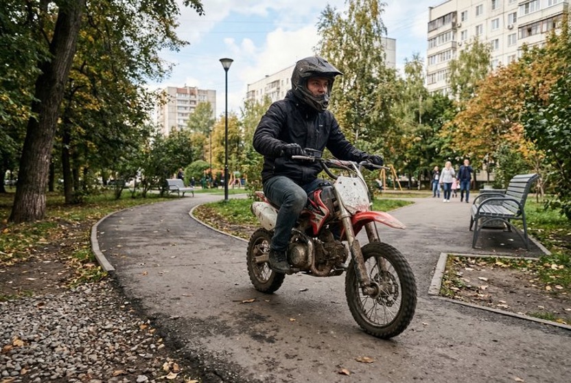 Главное правило: питбайк нельзя использовать на дорогах общего пользования, обочинах, тротуарах, велосипедных дорожках и в жилых зонах. Нарушение приравнивается к управлению транспортным средством без прав — штраф от 5 000 до 15 000 рублей плюс возможная эвакуация техники. Родители несовершеннолетних дополнительно рискуют статьей 5.35 КоАП РФ (неисполнение обязанностей по воспитанию) с штрафом до 30 000 рублей.